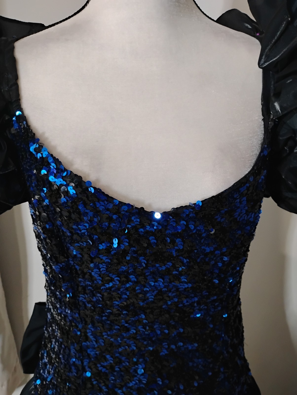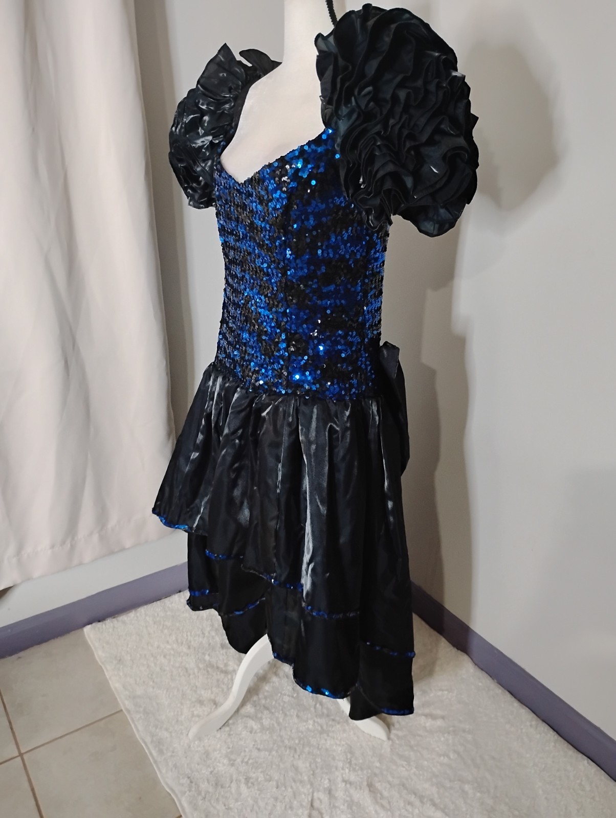 Unique Cinderella Ballroom Sequin Bodice Taffeta Skirt Blue Rosette Sleeves L