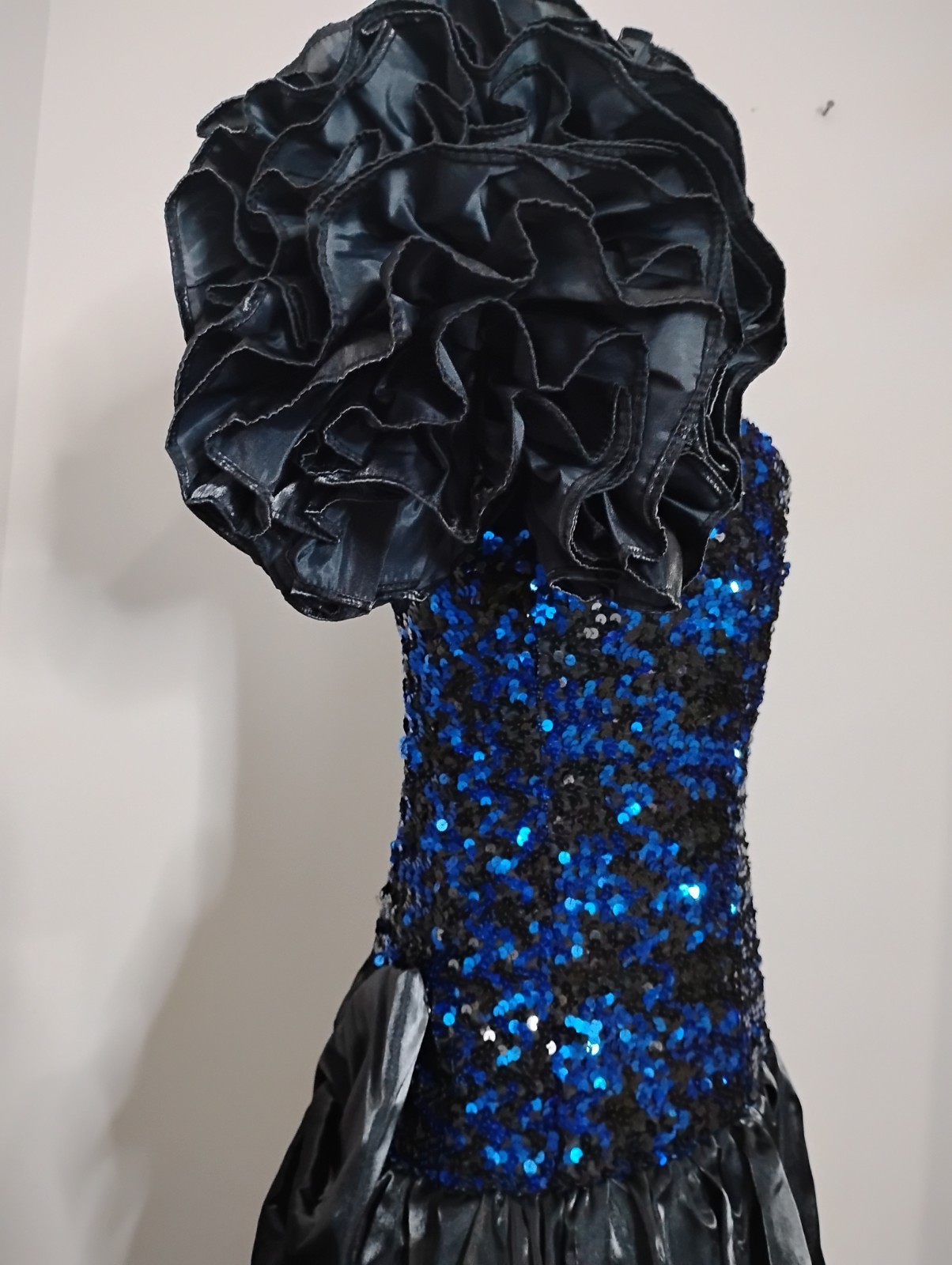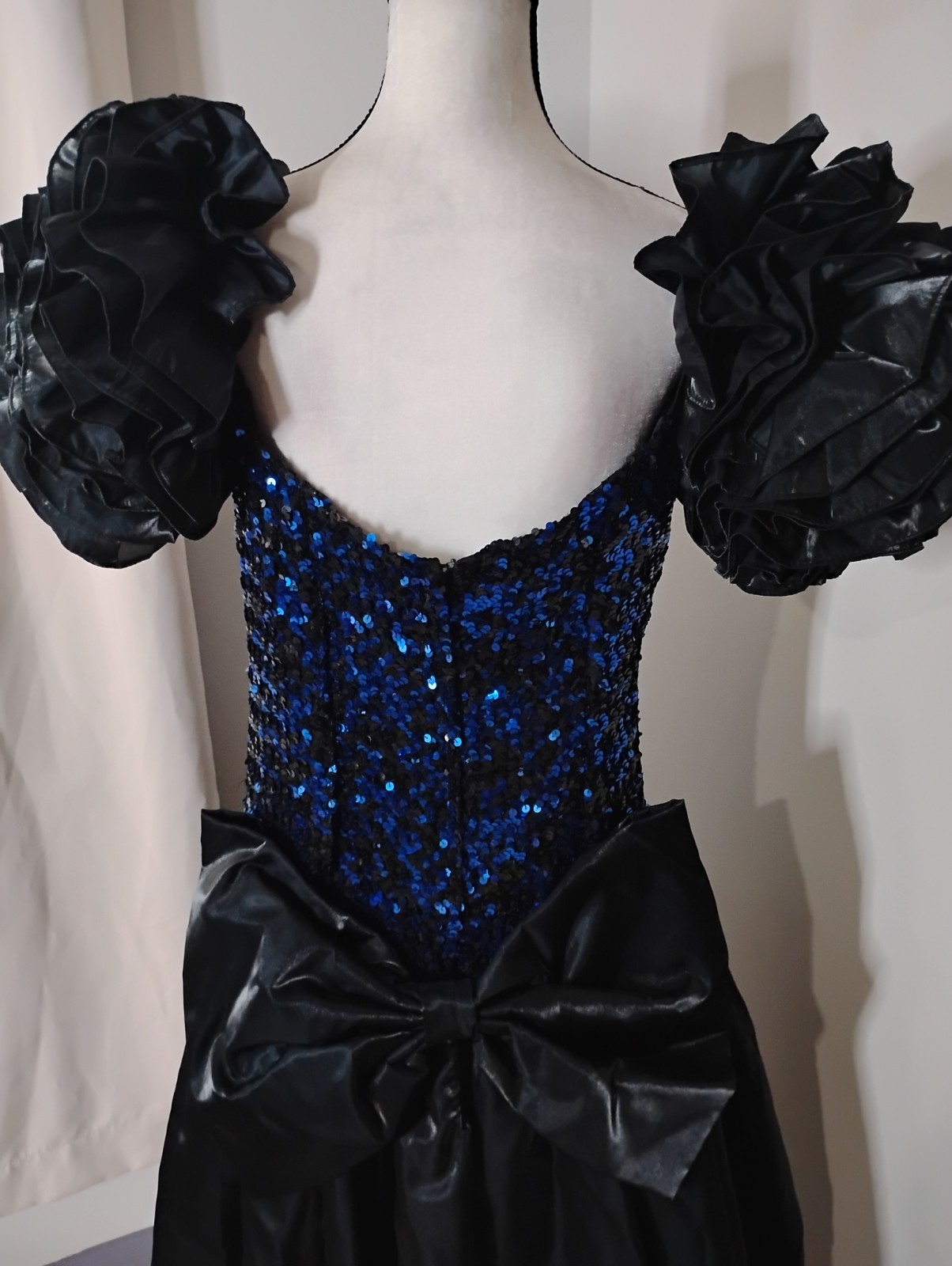 как выглядит Unique Cinderella Ballroom Sequin Bodice Taffeta Skirt Blue Rosette Sleeves L фото