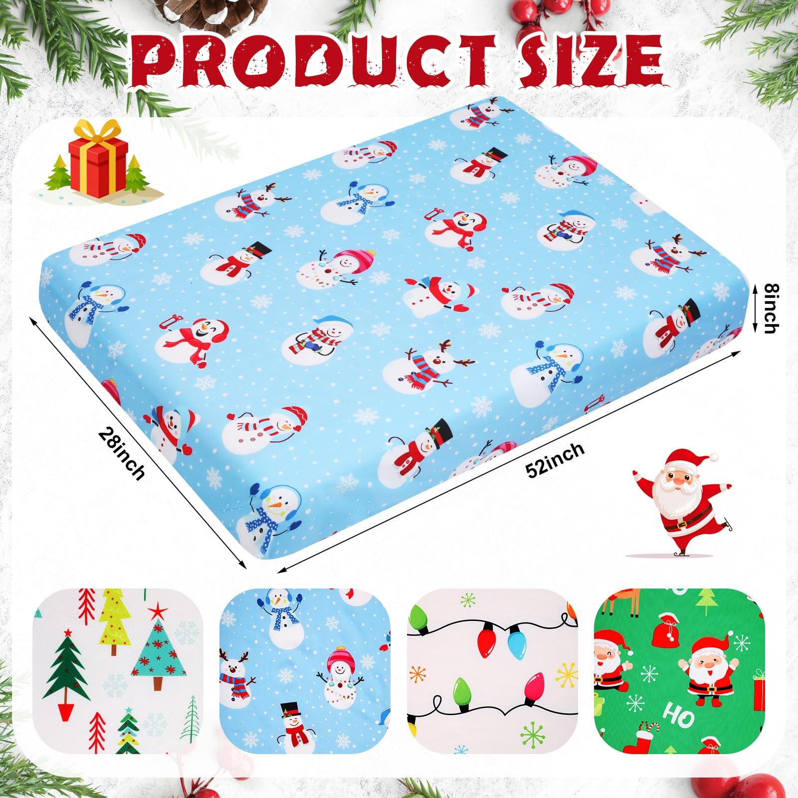 4 Pcs Christmas Crib Sheets Santa Claus Snowman Tree Light for Boys Girls 52'...