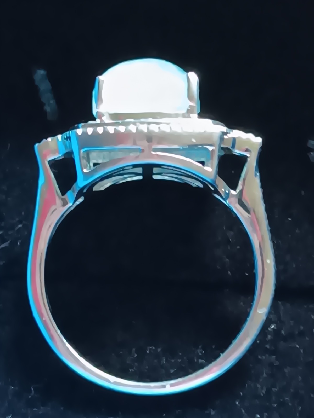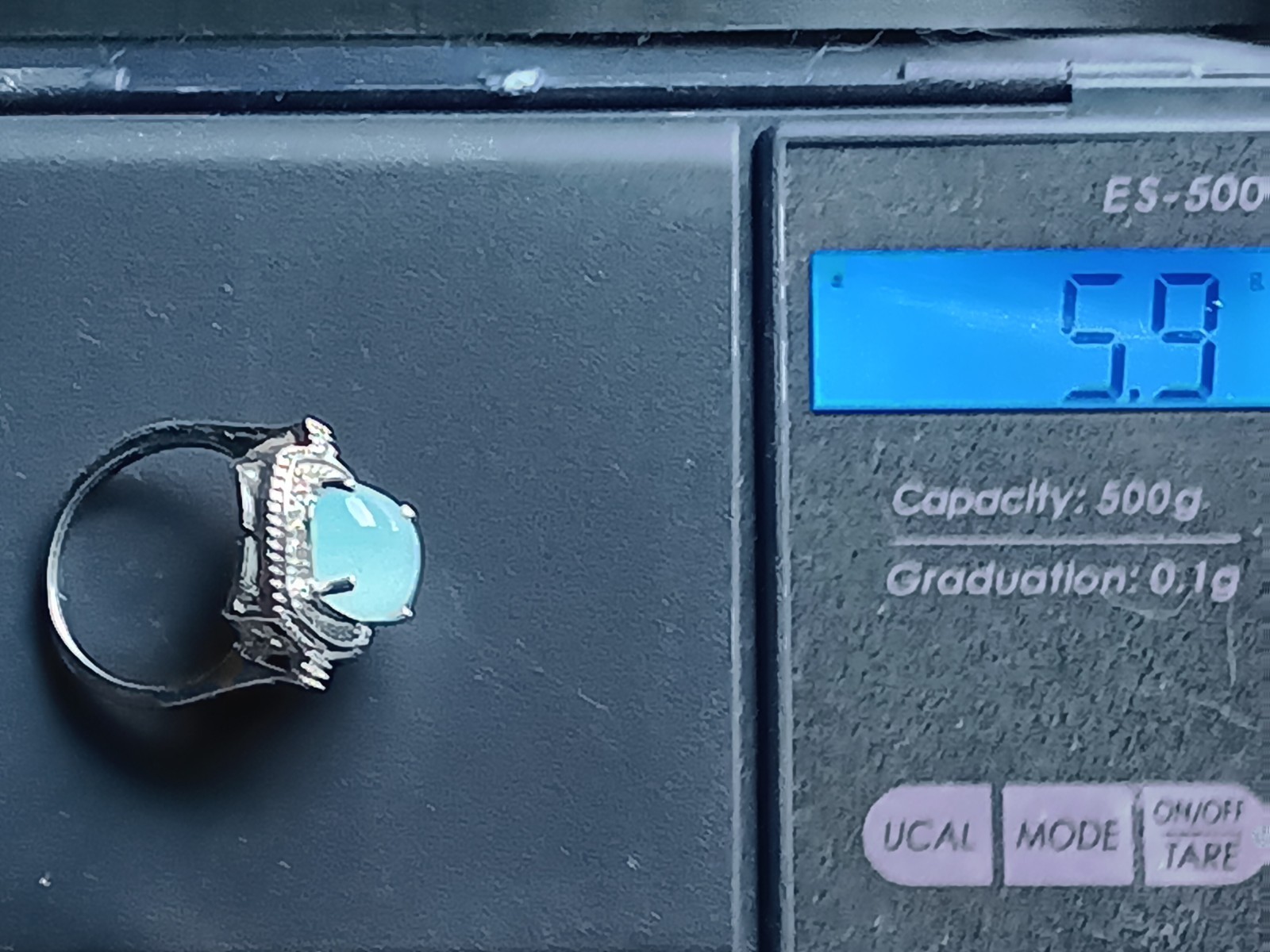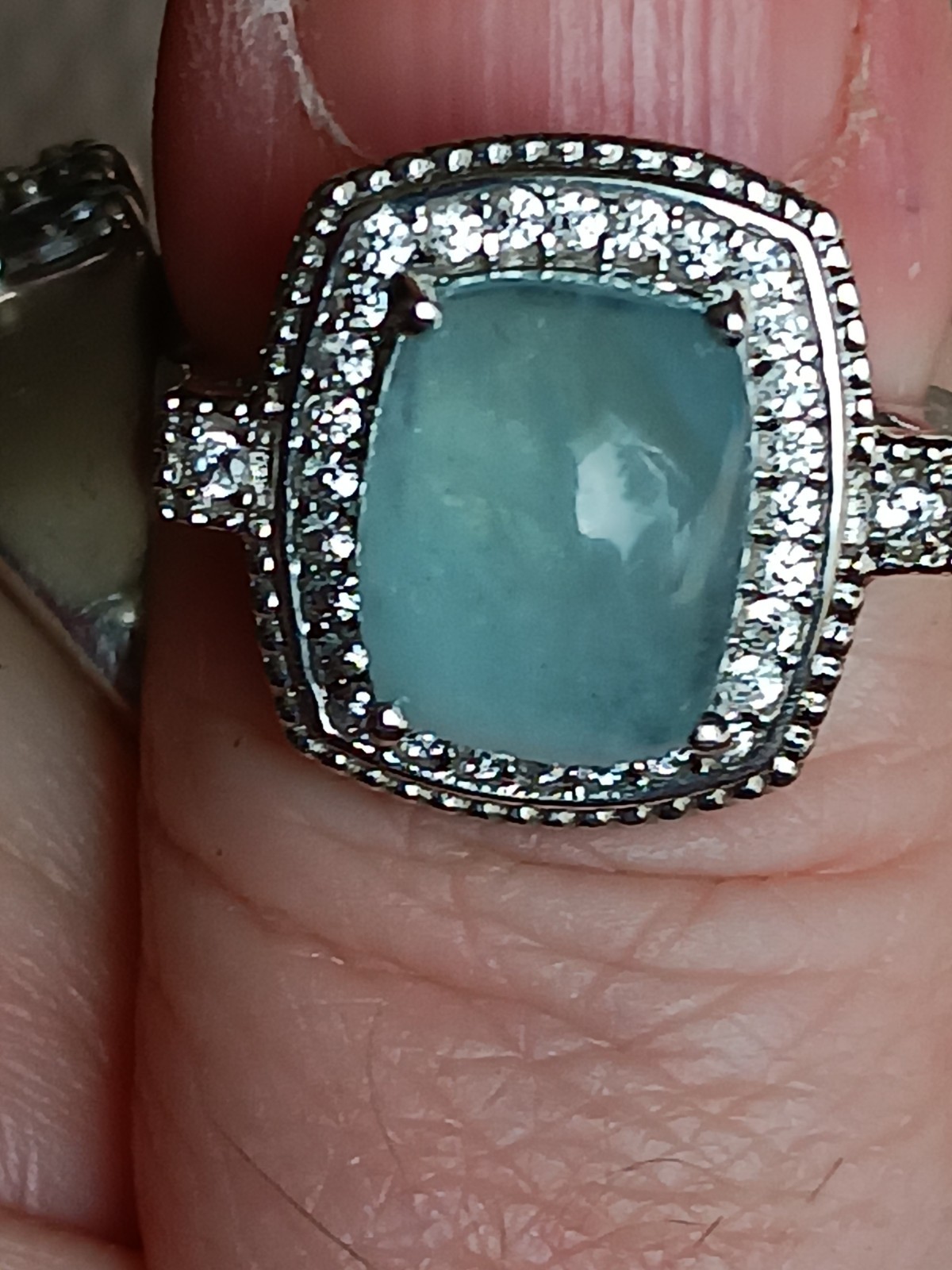 как выглядит NEW 925 Sterling Silver Cabochon Aquamarine And White Topaz Ring Size 7.25 Halo фото