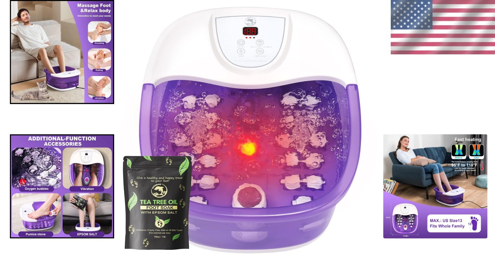 Multi-Function Heated Foot Bath with Epsom Salt 22 Massage Rollers - Purple