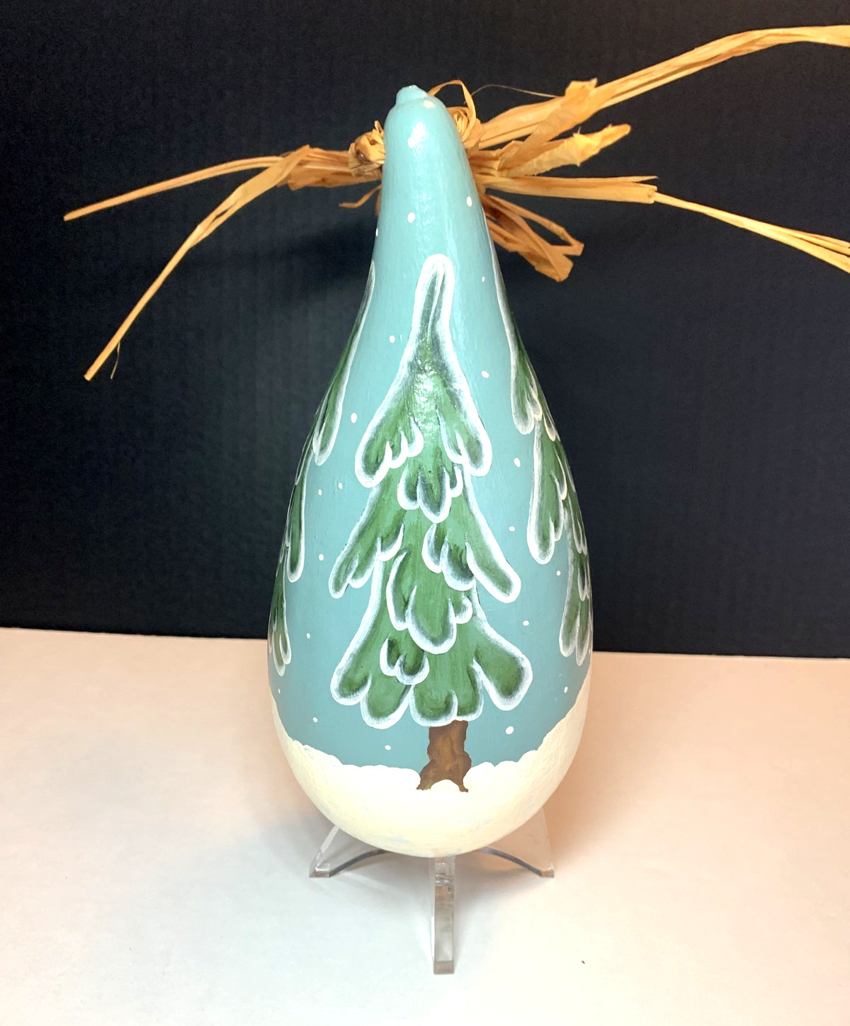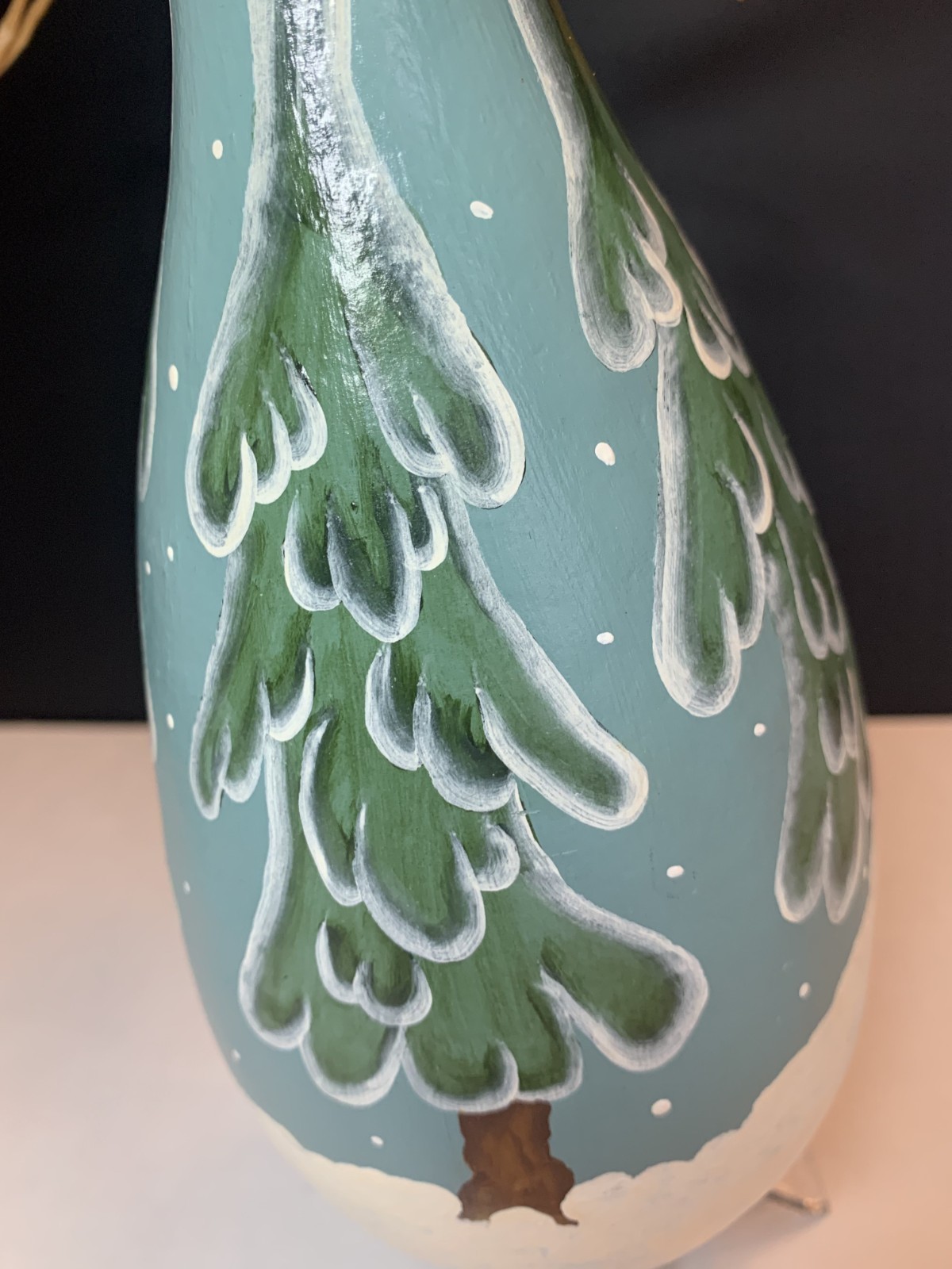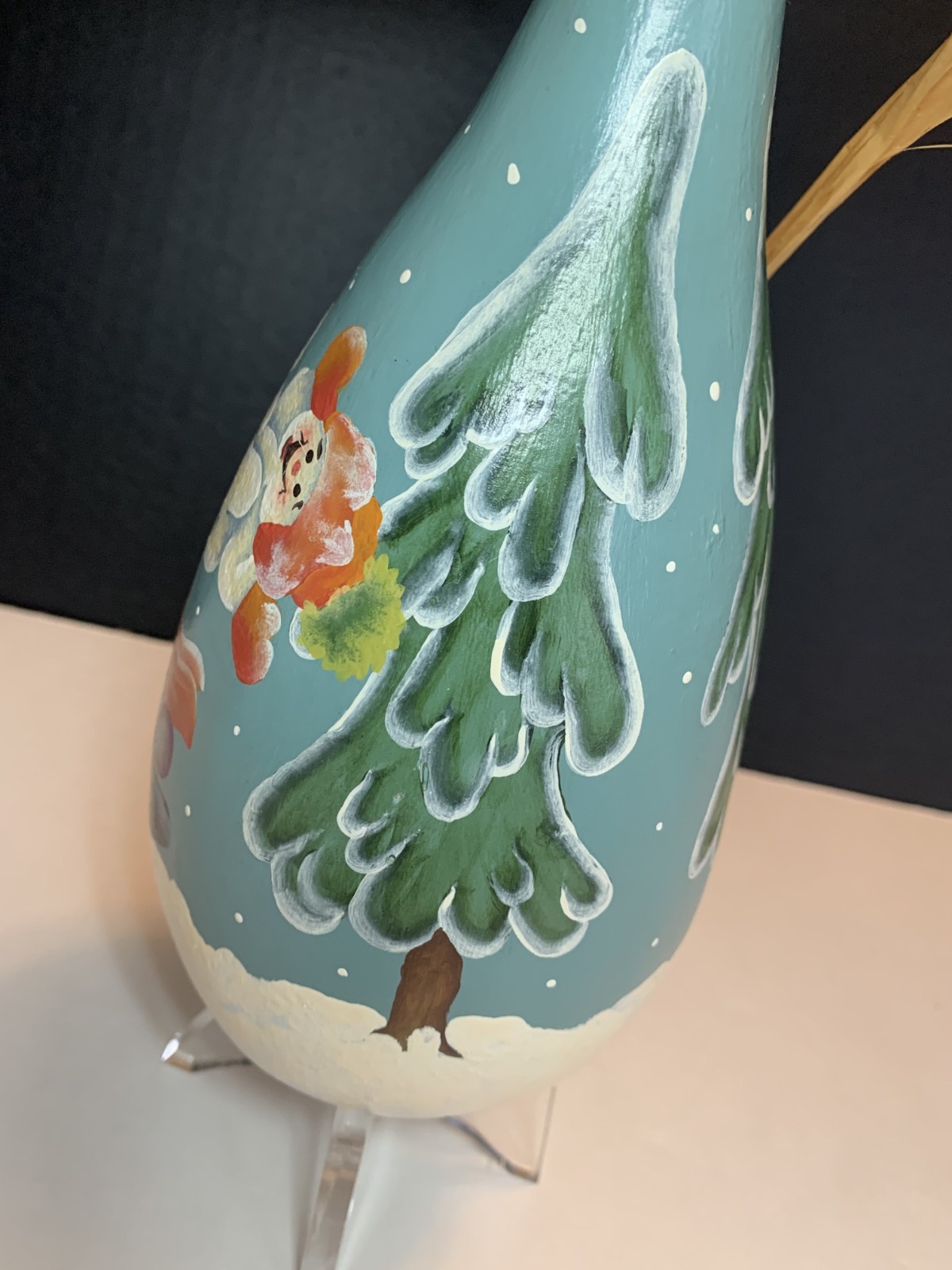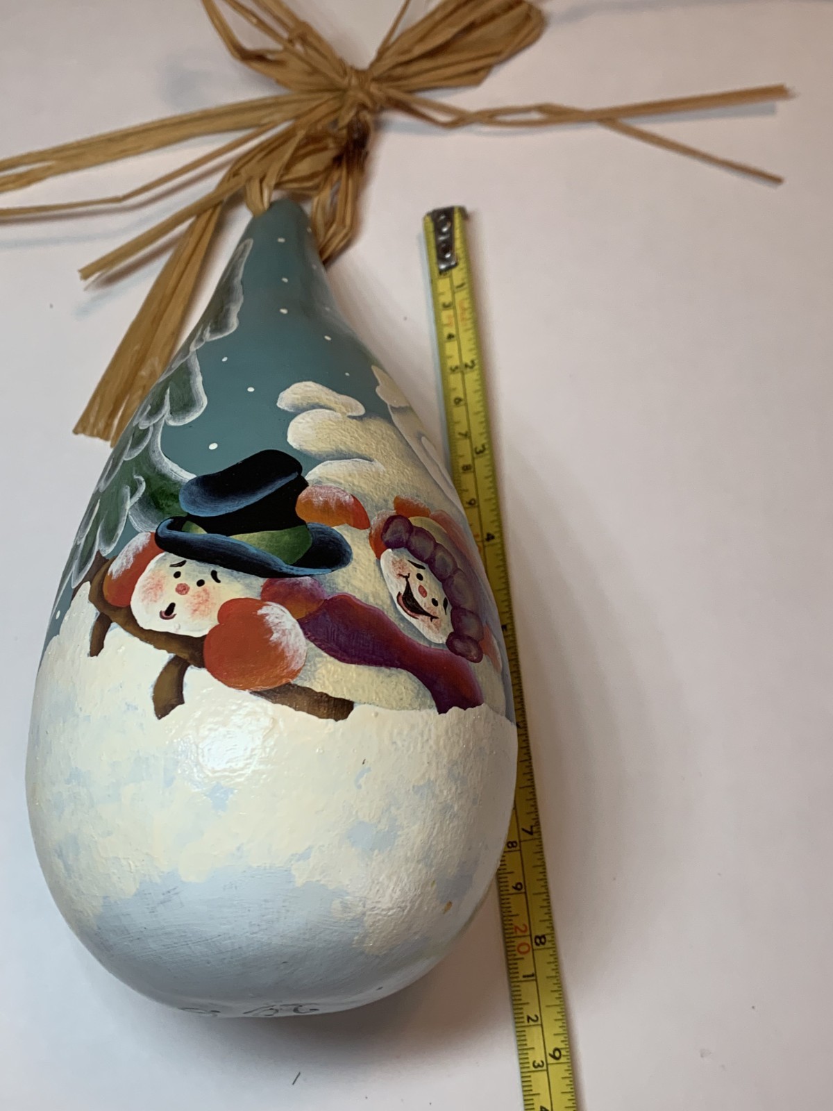как выглядит Hand Painted Gourd Snowmen Sledding Snowy Forest Folk Art Christmas 9" Signed фото