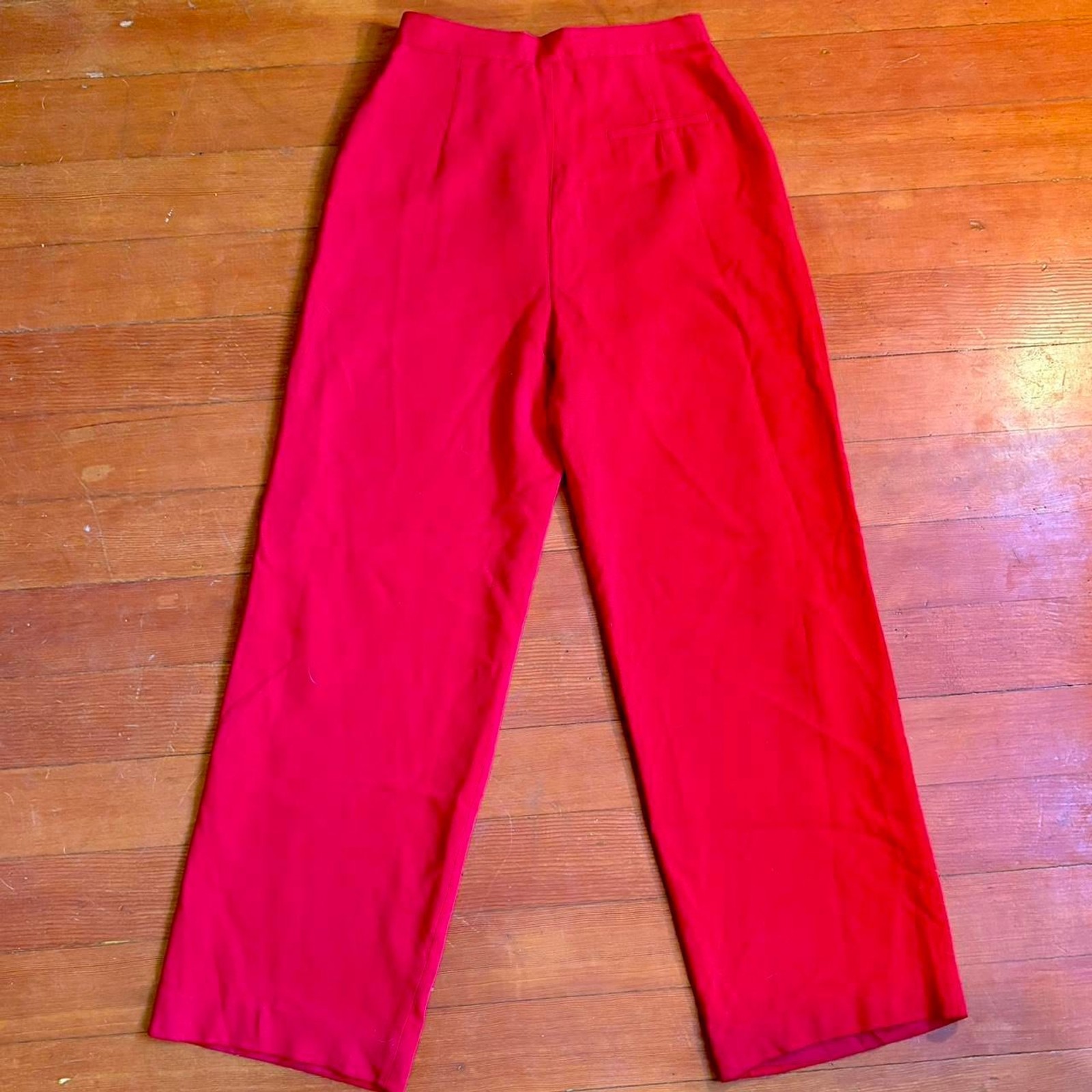 Ralph Lauren Women's Red Tailored Trousers 100 Silk High Waist Slacks 6P Vtg.