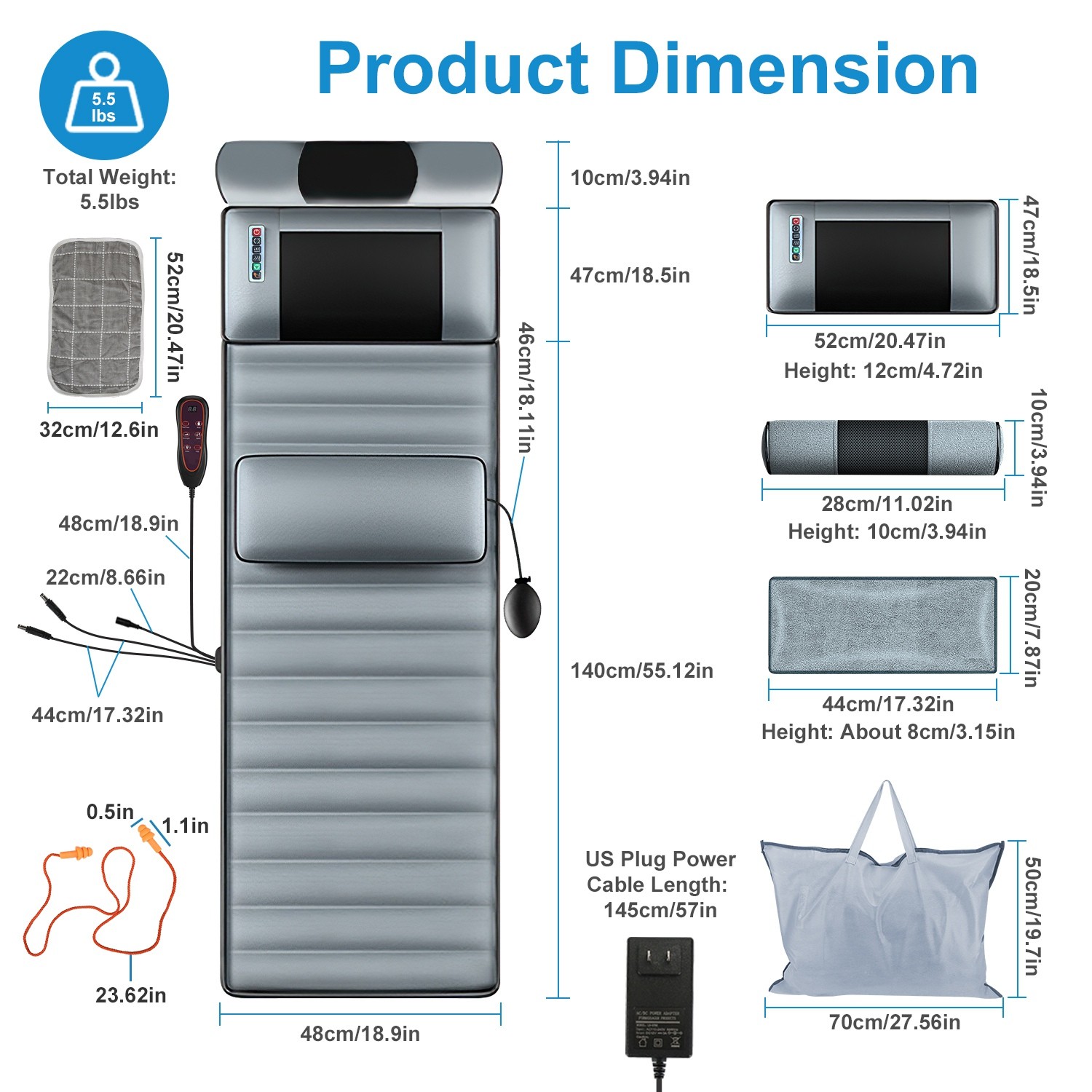Full Body Electric Massage Mat Vibration Massage Pad Cushion Back Massage w/Heat