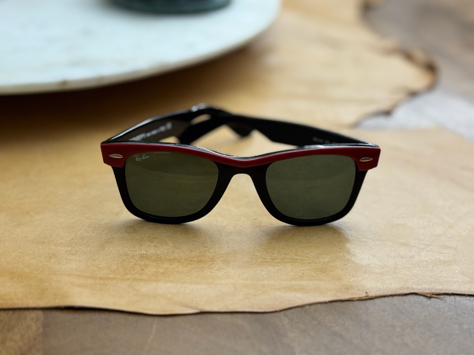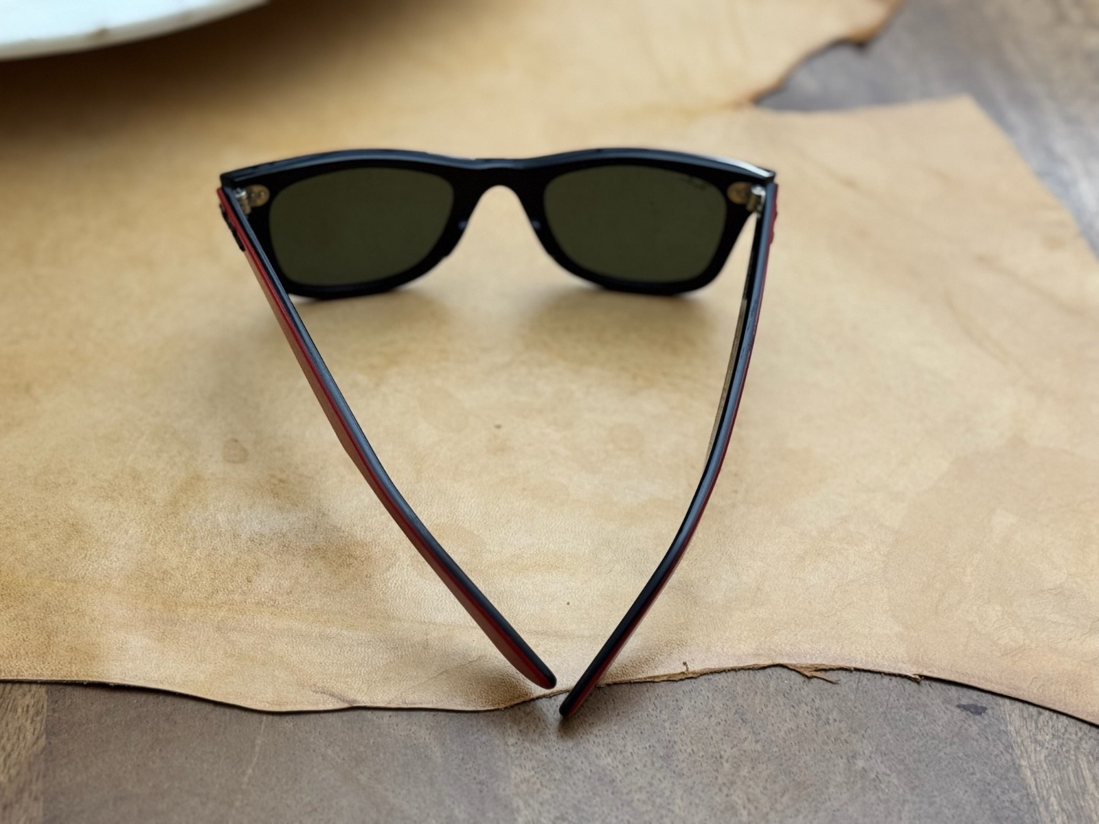 как выглядит Ray Ban RB2143 47-22 Wayfarer II Black/Red Frame Green Lens Amazing Vintage Pair фото