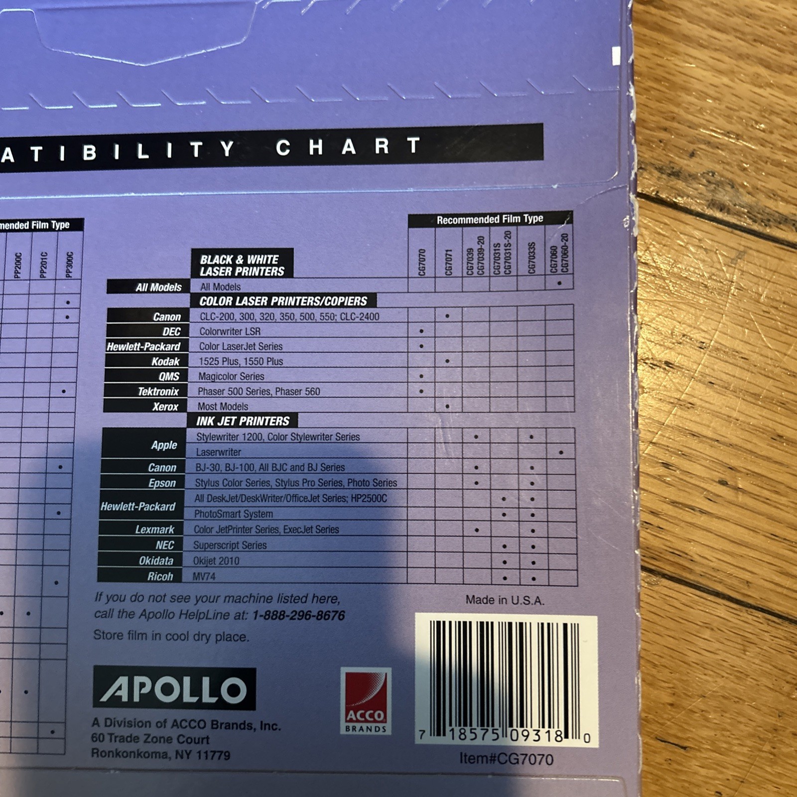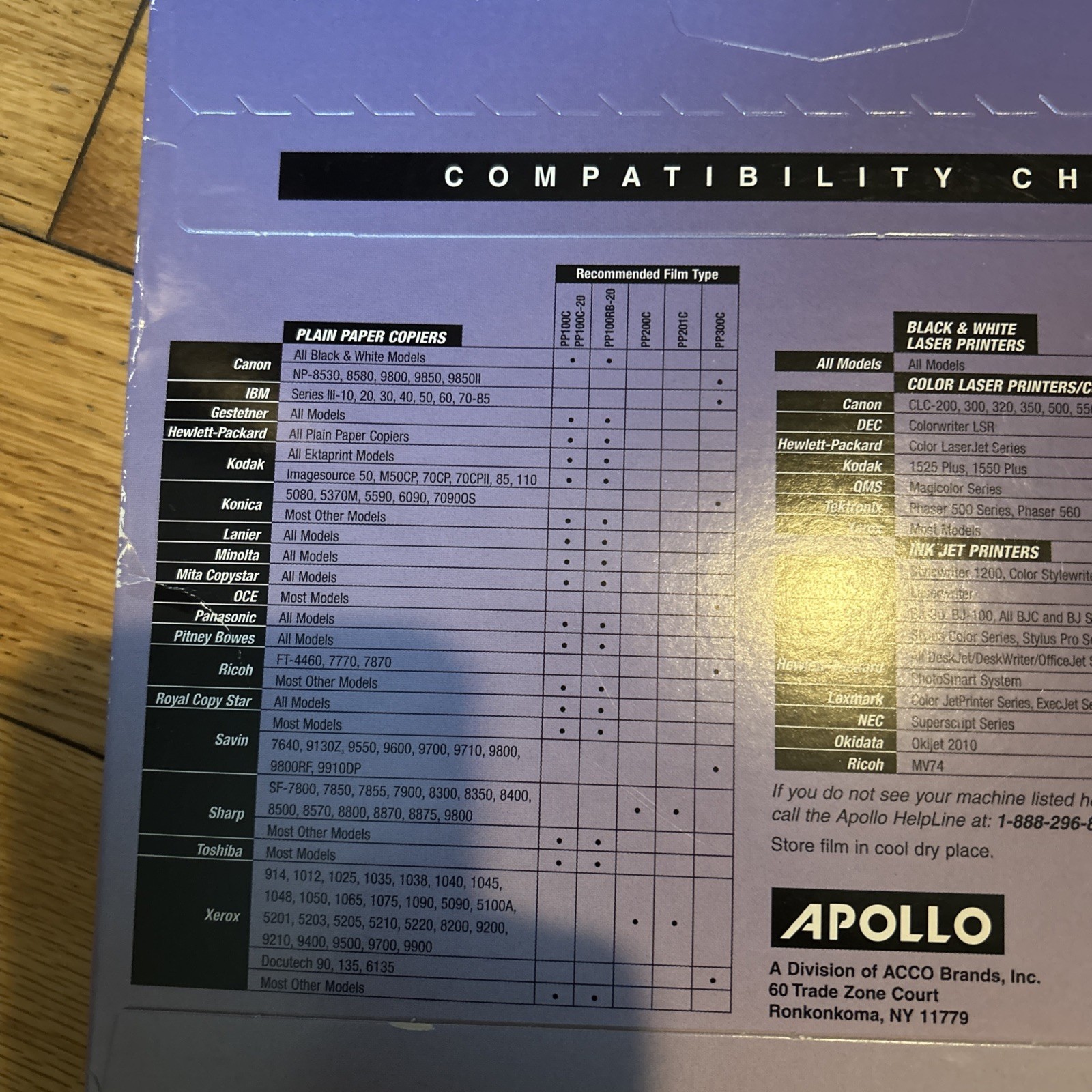 50 Sheets Apollo Color Laser Printer Transparency Film 8.5 x 11
