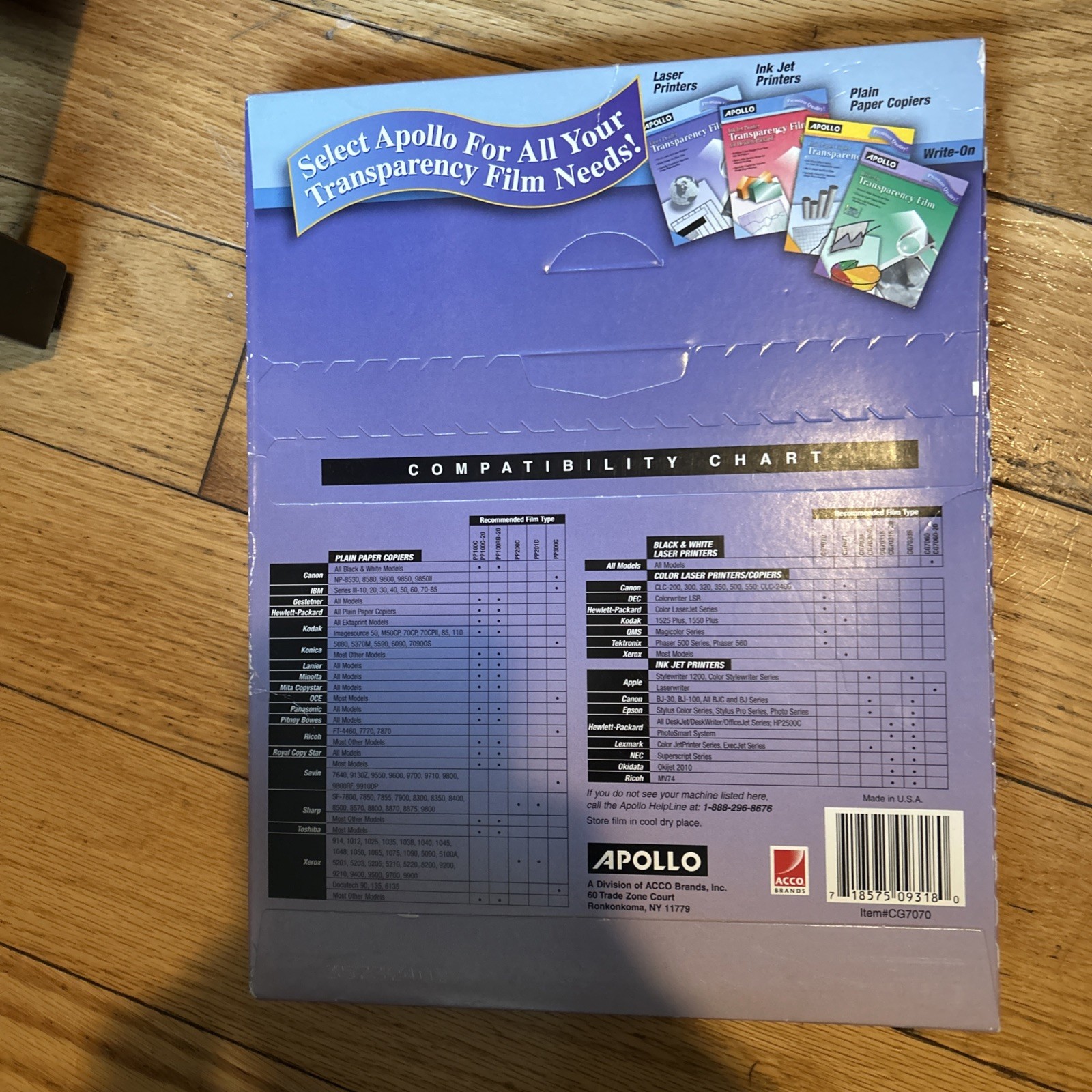 как выглядит 50 Sheets Apollo Color Laser Printer Transparency Film 8.5 x 11 фото