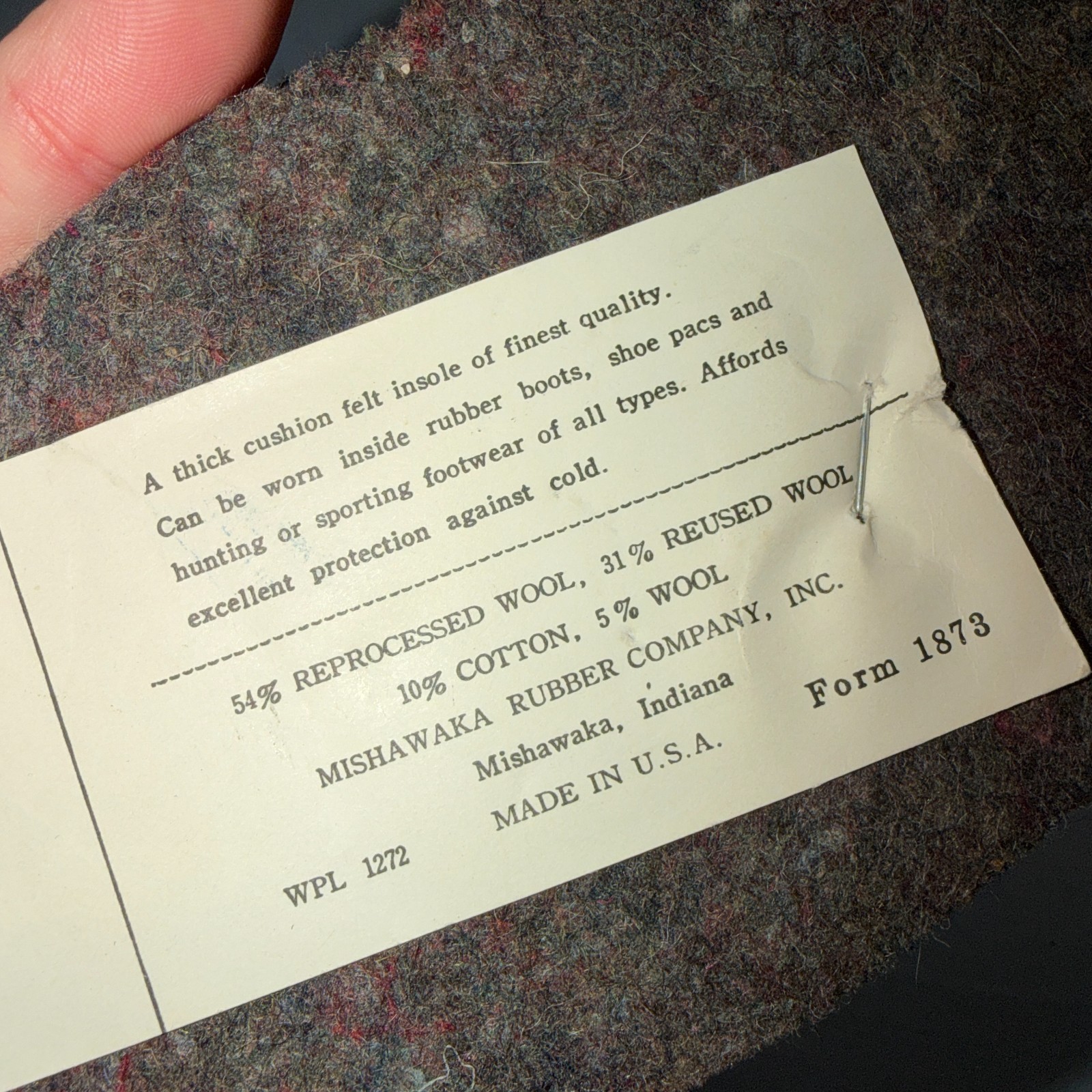 VTG Ball Bend Felt Insoles Mens 8 Sub Zero Vintage Made in USA Black Wool