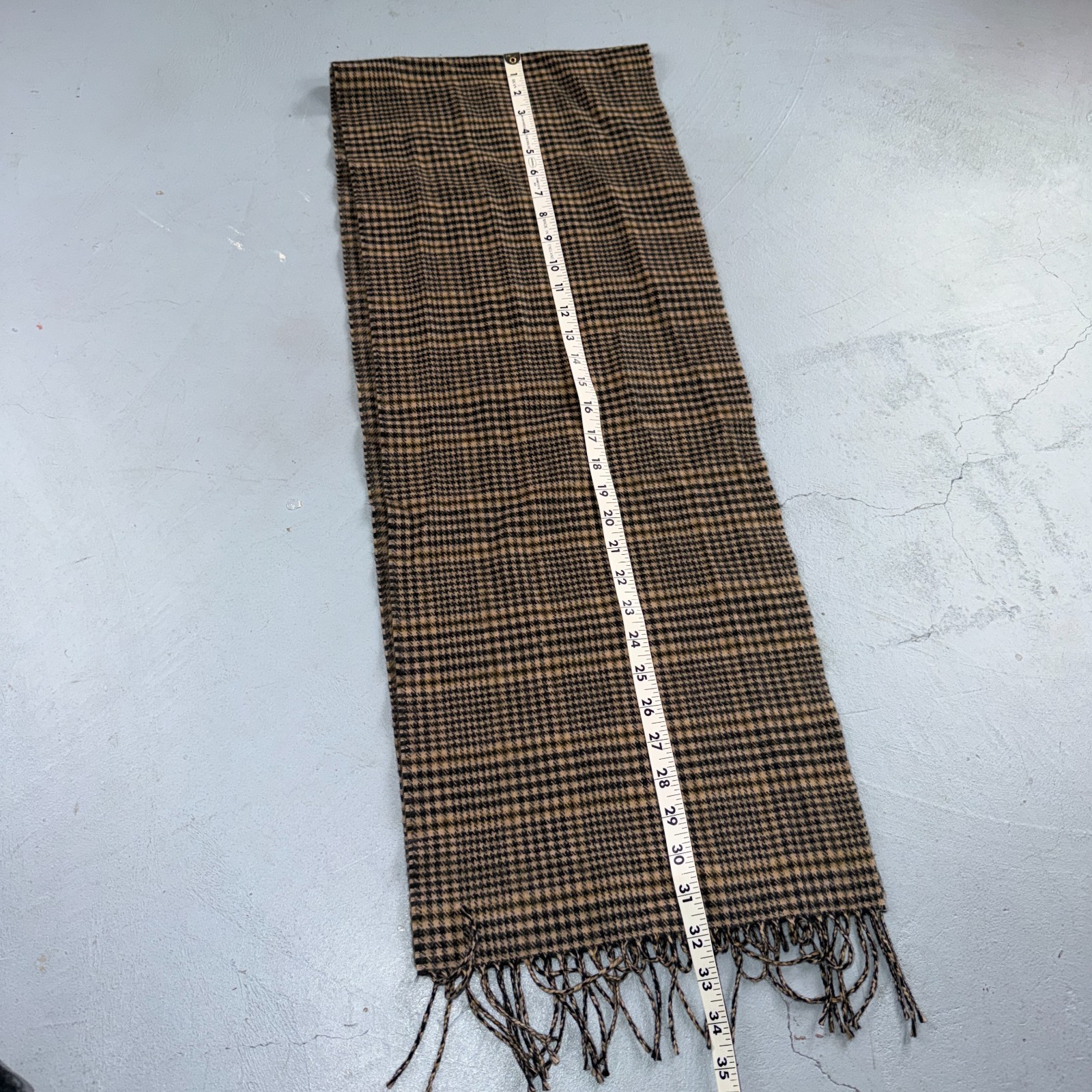 VTG Neck Scarf Brown White Plaid Fringe 1980s Checkerboard Cute No Brand