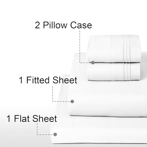 Size Bed Sheet Set - 4 Piece Luxury Comfy Bed Sheet Set for Queen White