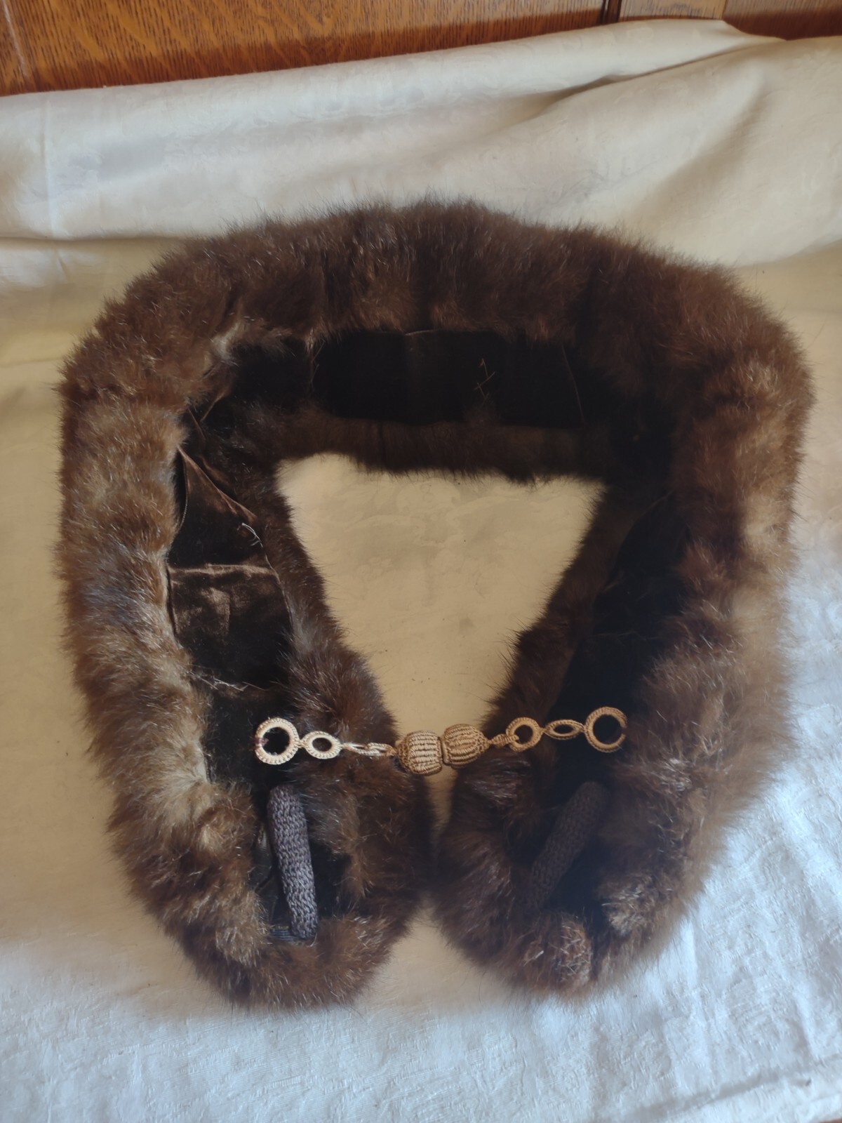 как выглядит VTG Fur Stole Collar Dark Brown Shawl Wrap Crocheted Cover Snap Clasp 36" X 4" фото