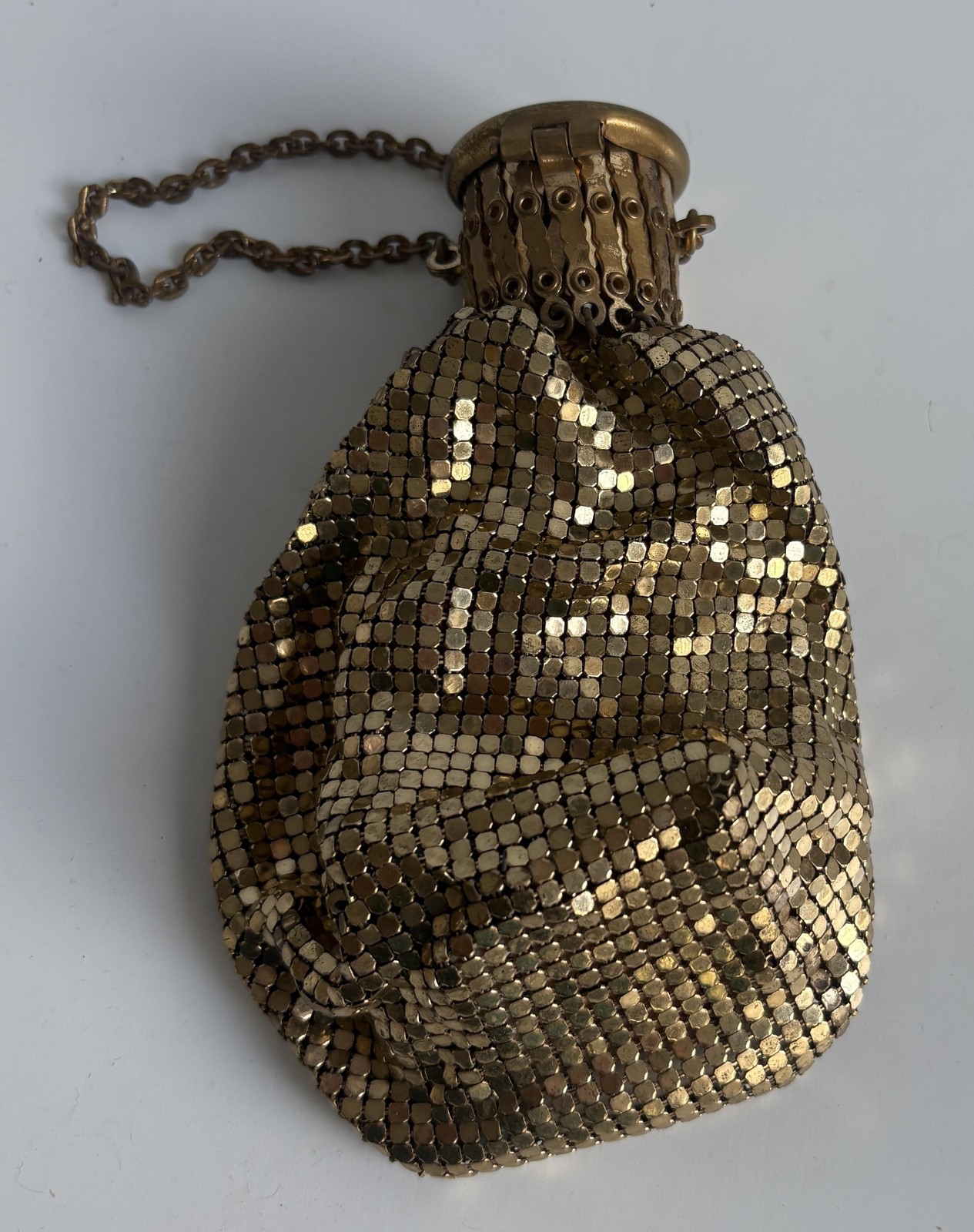 Vintage Gold Metal Mesh Coin Purse Womens Evening Chain Dance Bag Art Deco