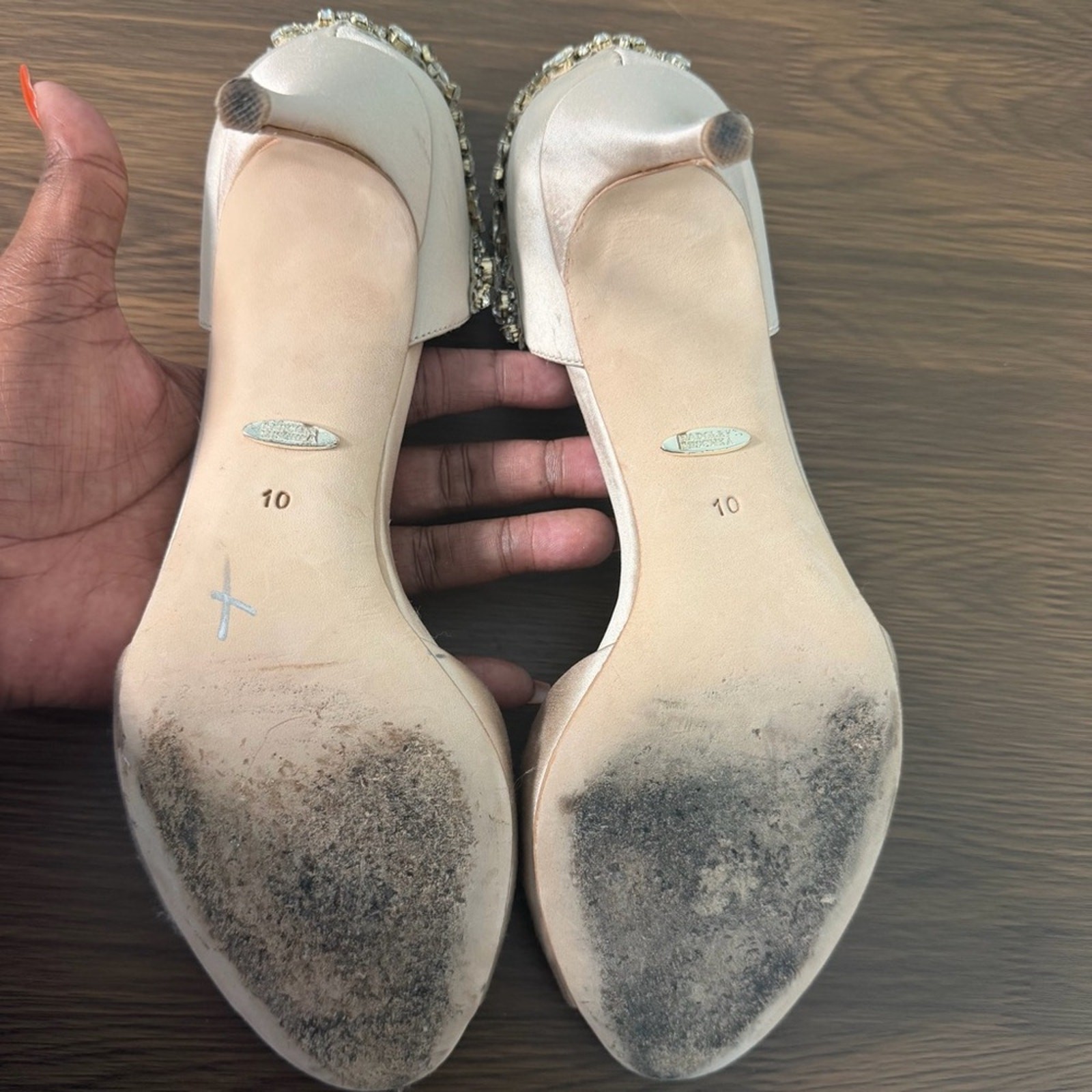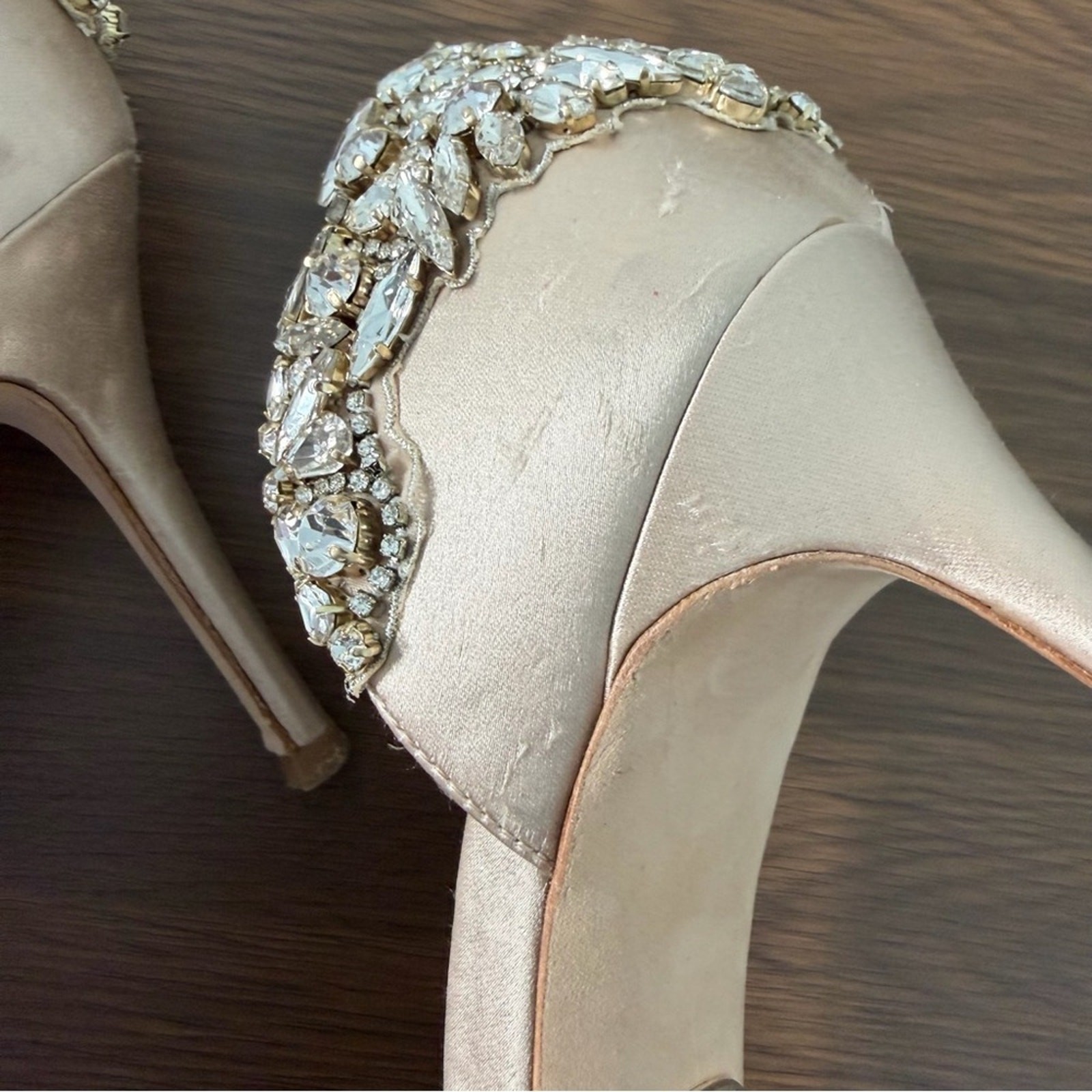 как выглядит Badgley Mischka Celeste Champagne Peep-Toe Embellished Heels Sz 10 фото