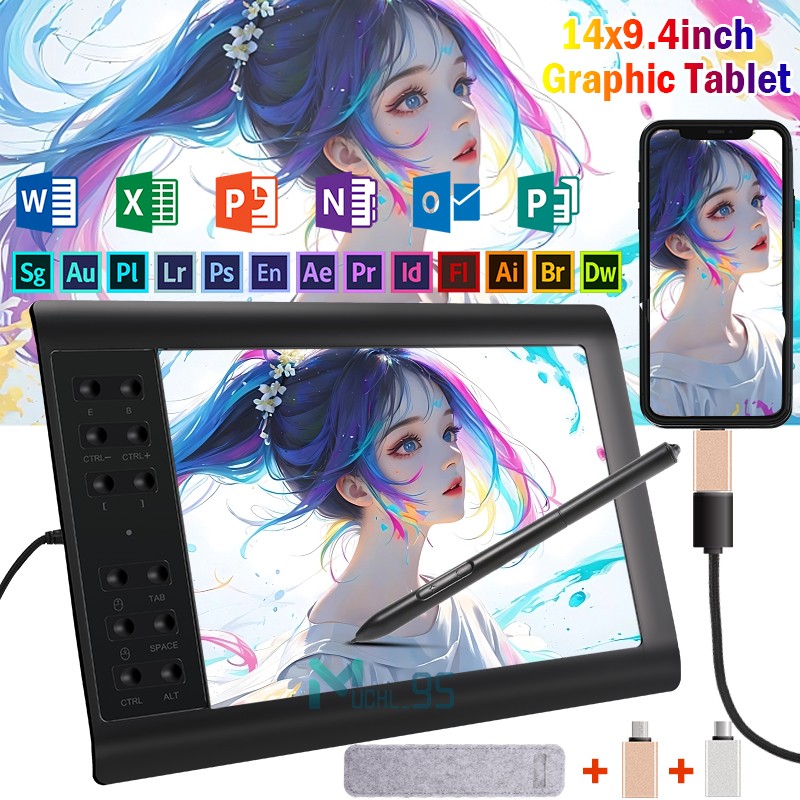 Digital Drawing Tablet 10x6 inch Screen, Graphics Tablet, Battery-free pen Gifts