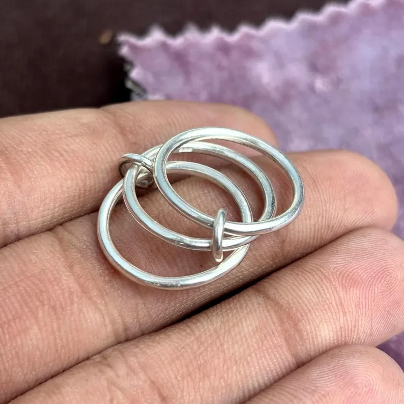 925 Sterling Silver Stacking Rings Set: Boho Artisan Minimalist Bands All Size