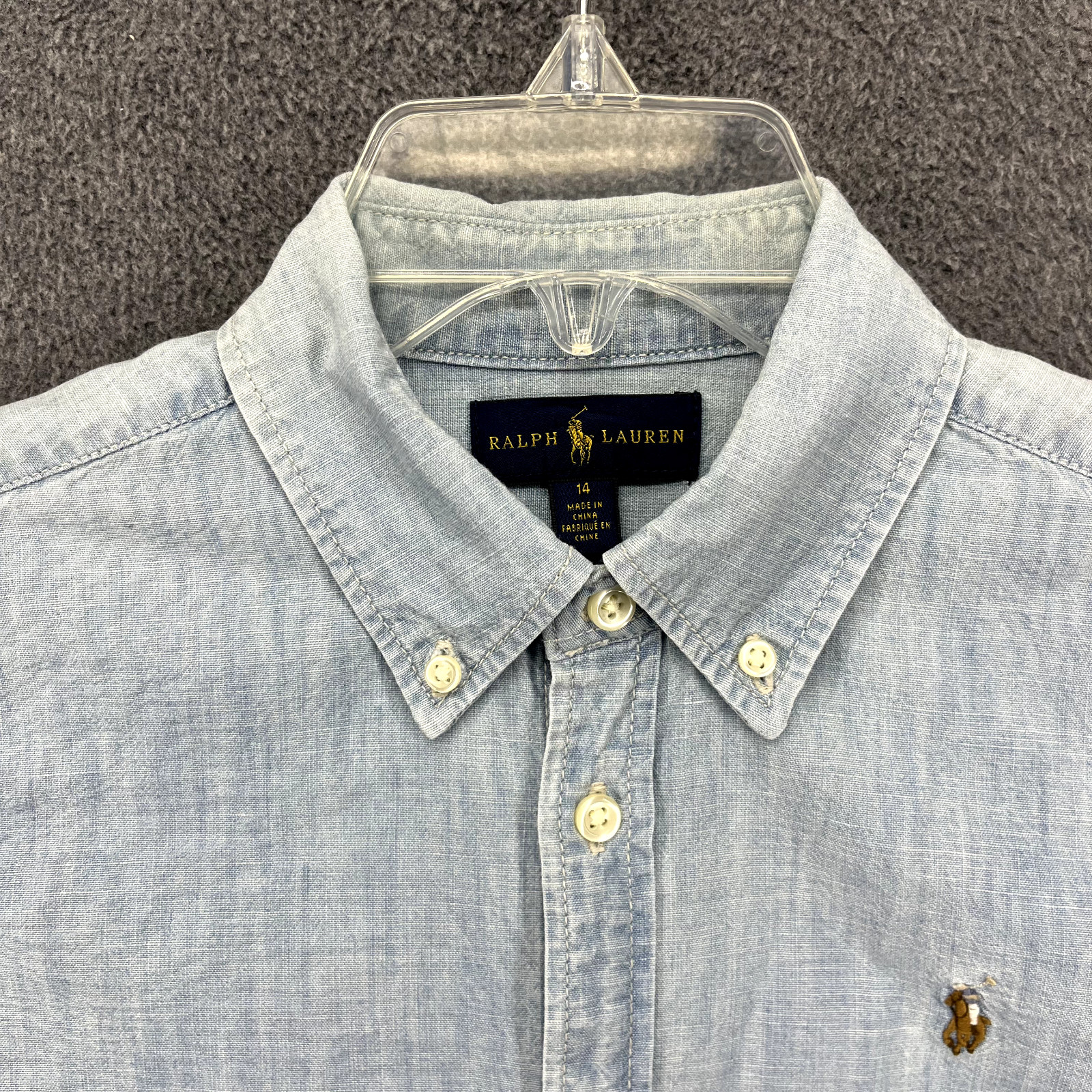 Ralph Lauren Button Down Shirt Youth Boy 14 Blue Chambray Oxford small pony