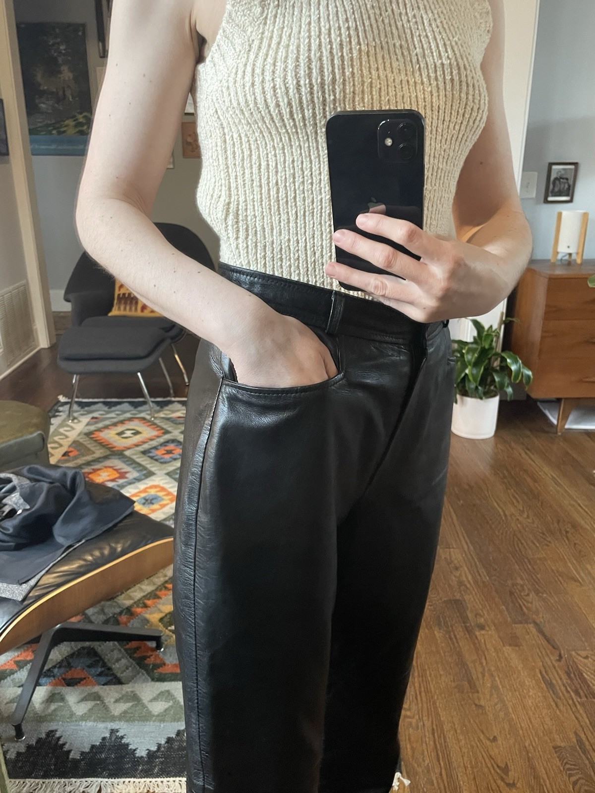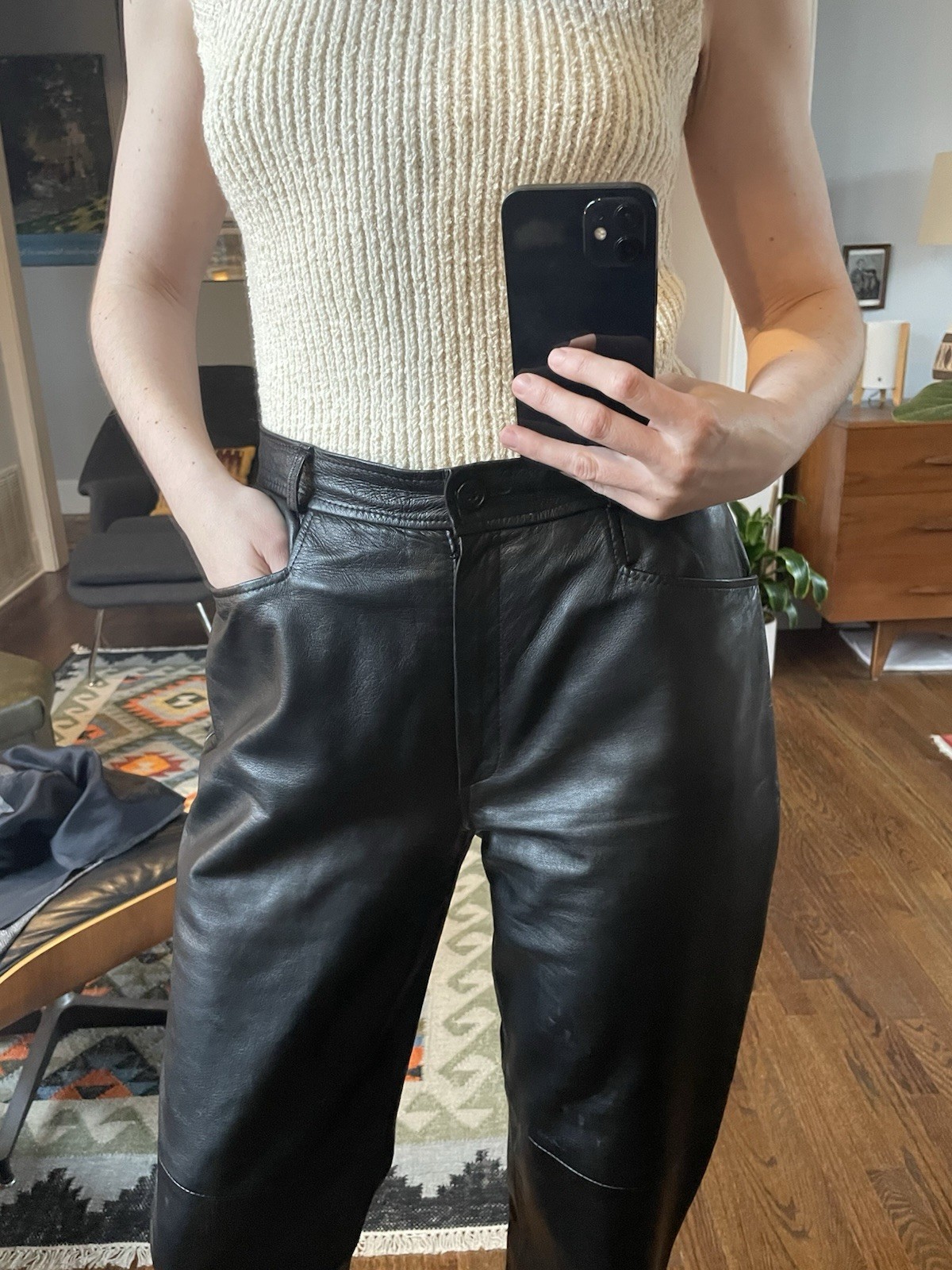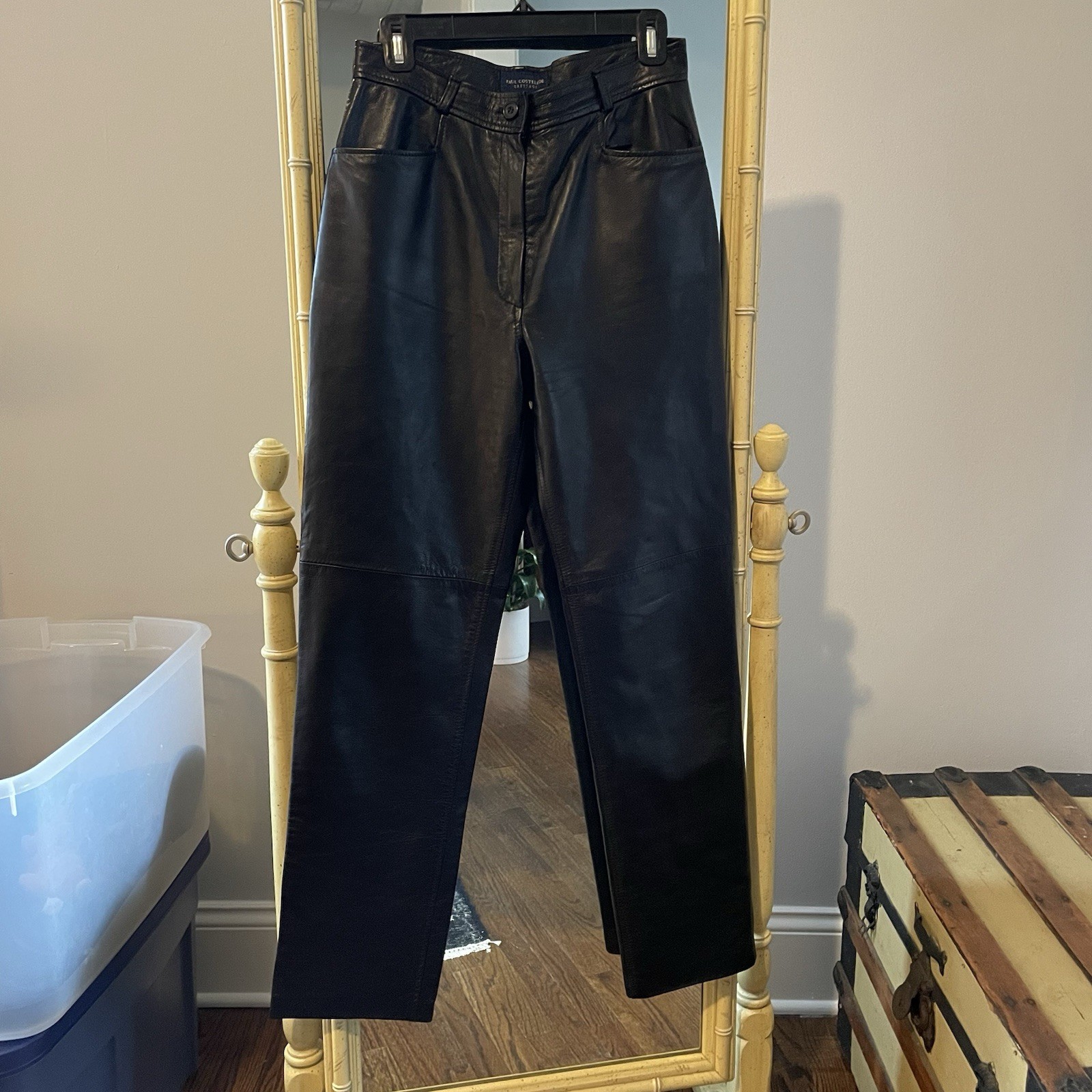 как выглядит Vintage 90s Straight Leg Lined Black Leather Pants 28 фото