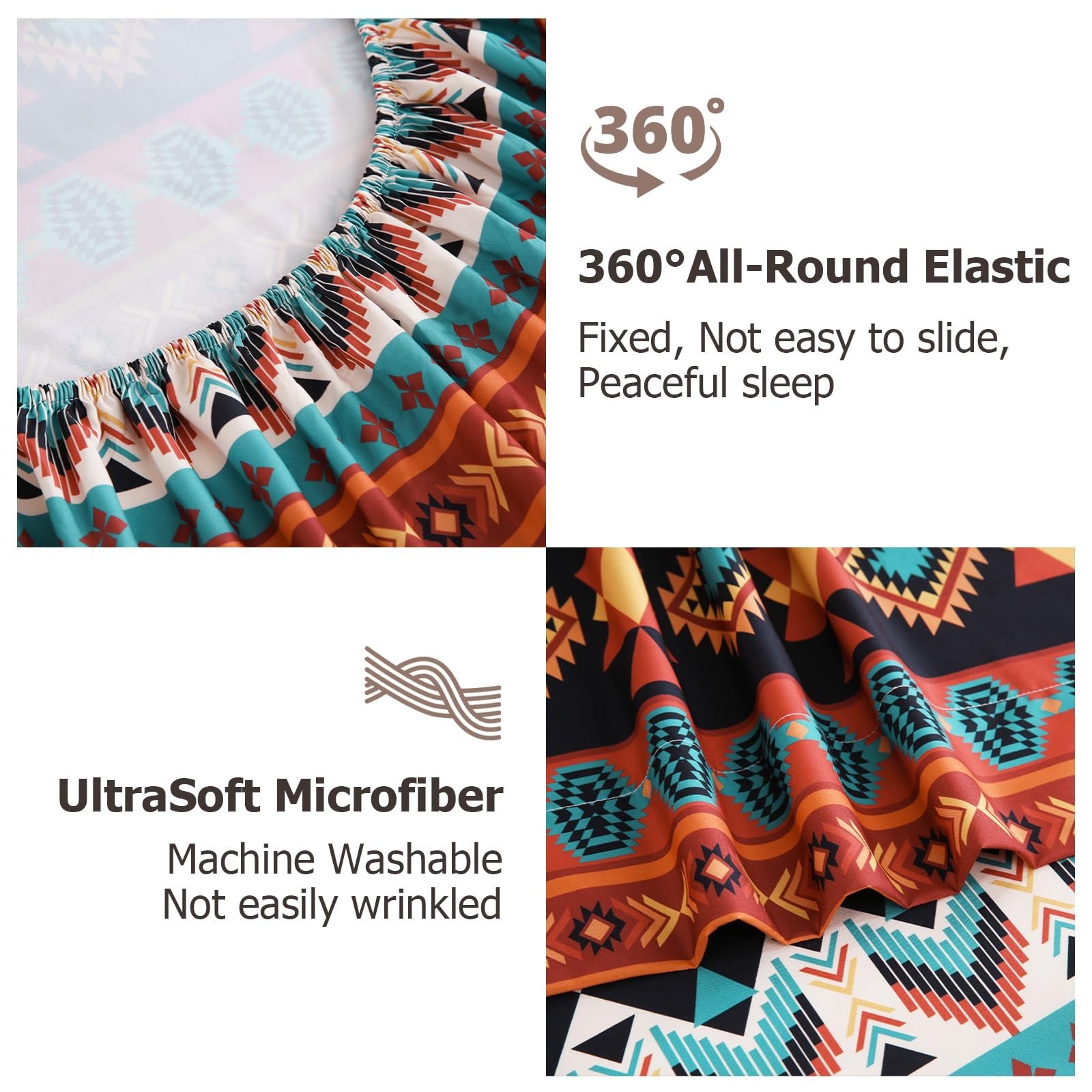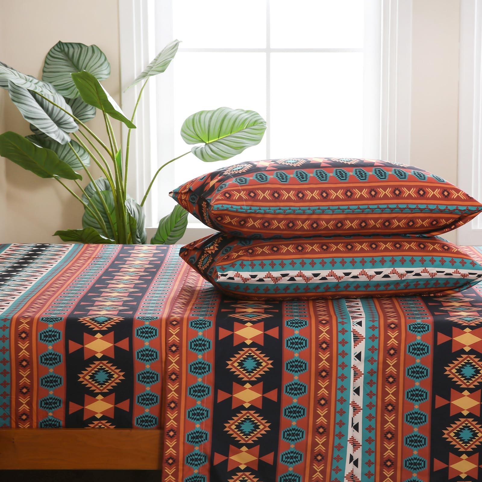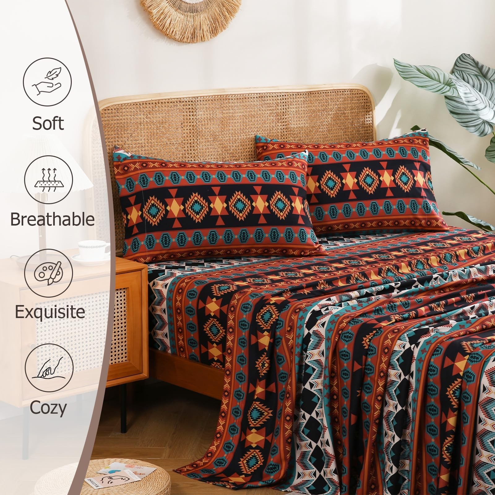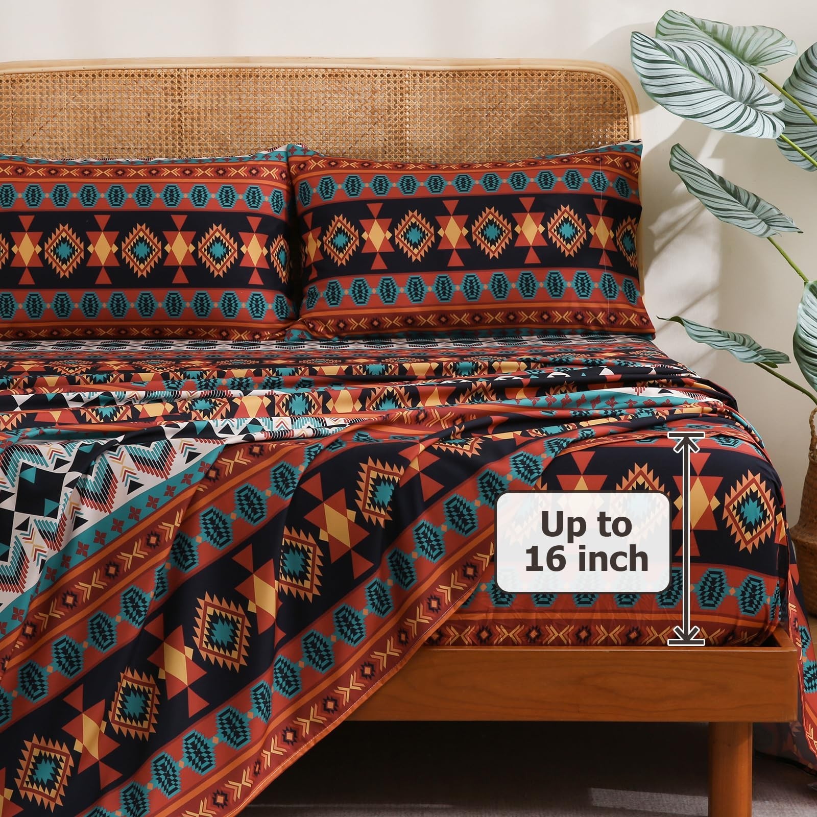 4 Pieces Queen Sheet Set Bohemian, Boho Sheets Soft Microfiber Deep Pocket, W...