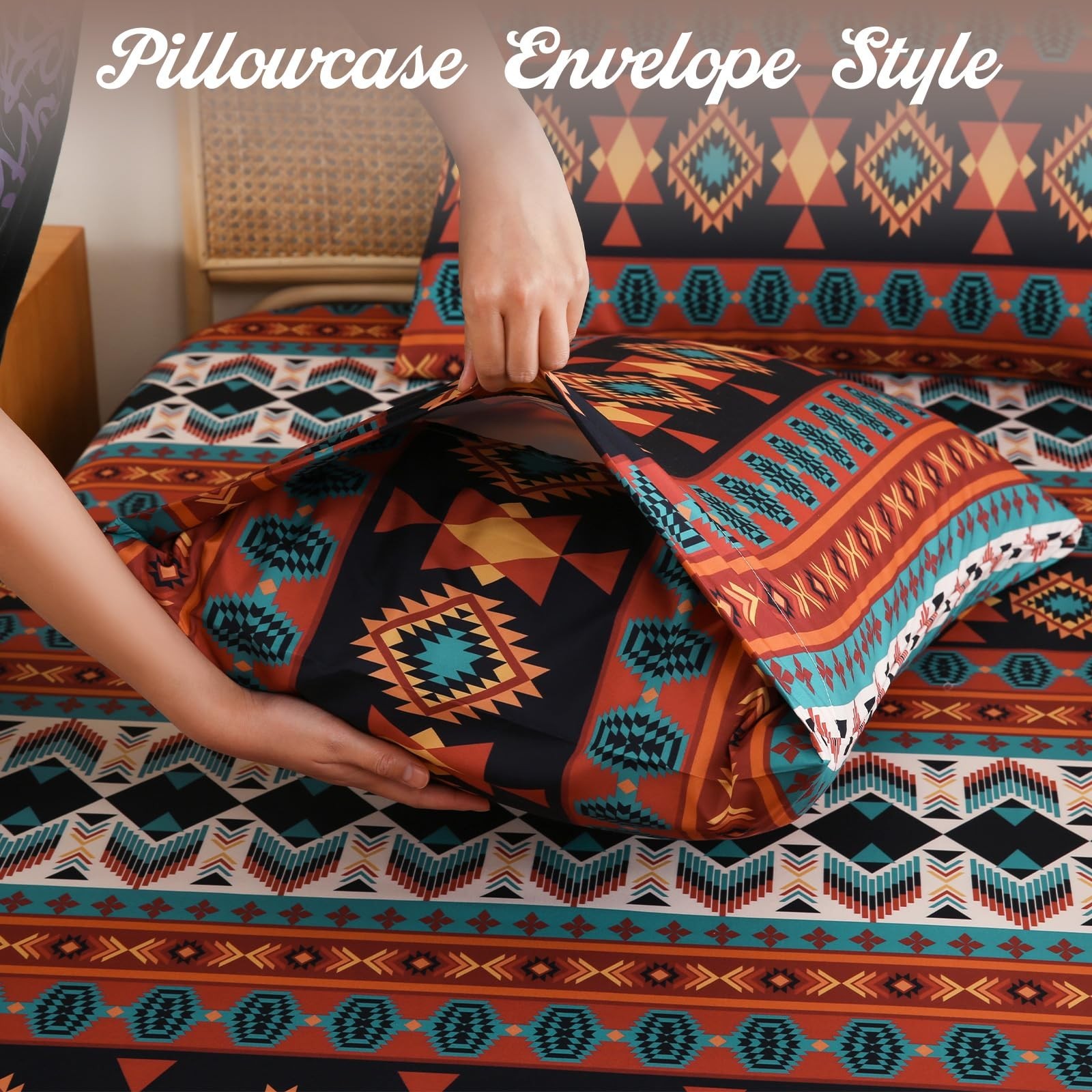 как выглядит 4 Pieces Queen Sheet Set Bohemian, Boho Sheets Soft Microfiber Deep Pocket, W... фото