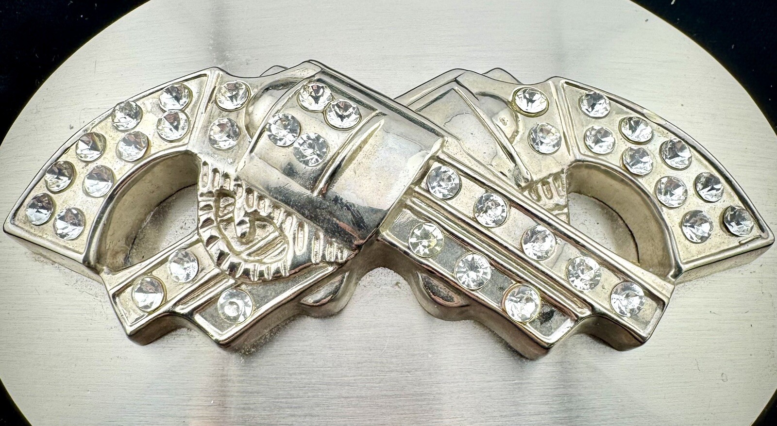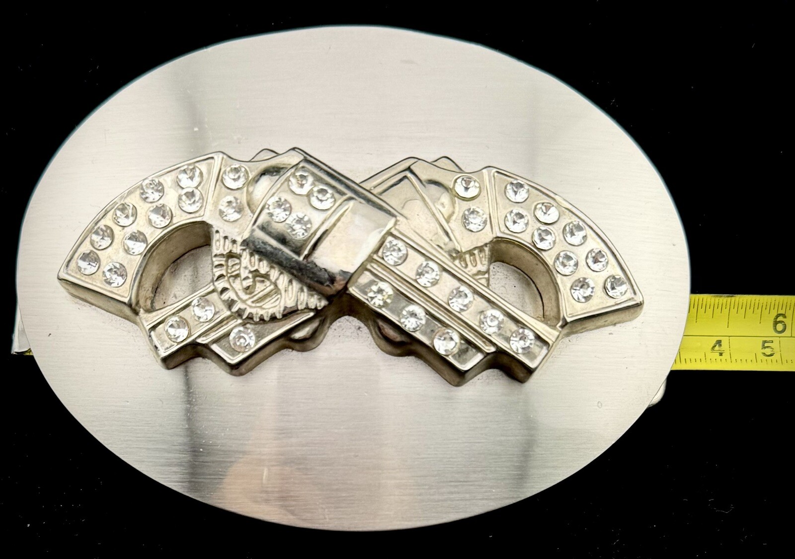 Crossed Guns Pistol Revolvers Six Shooters Rhinestone 5.25 Cowboy Belt Buckle