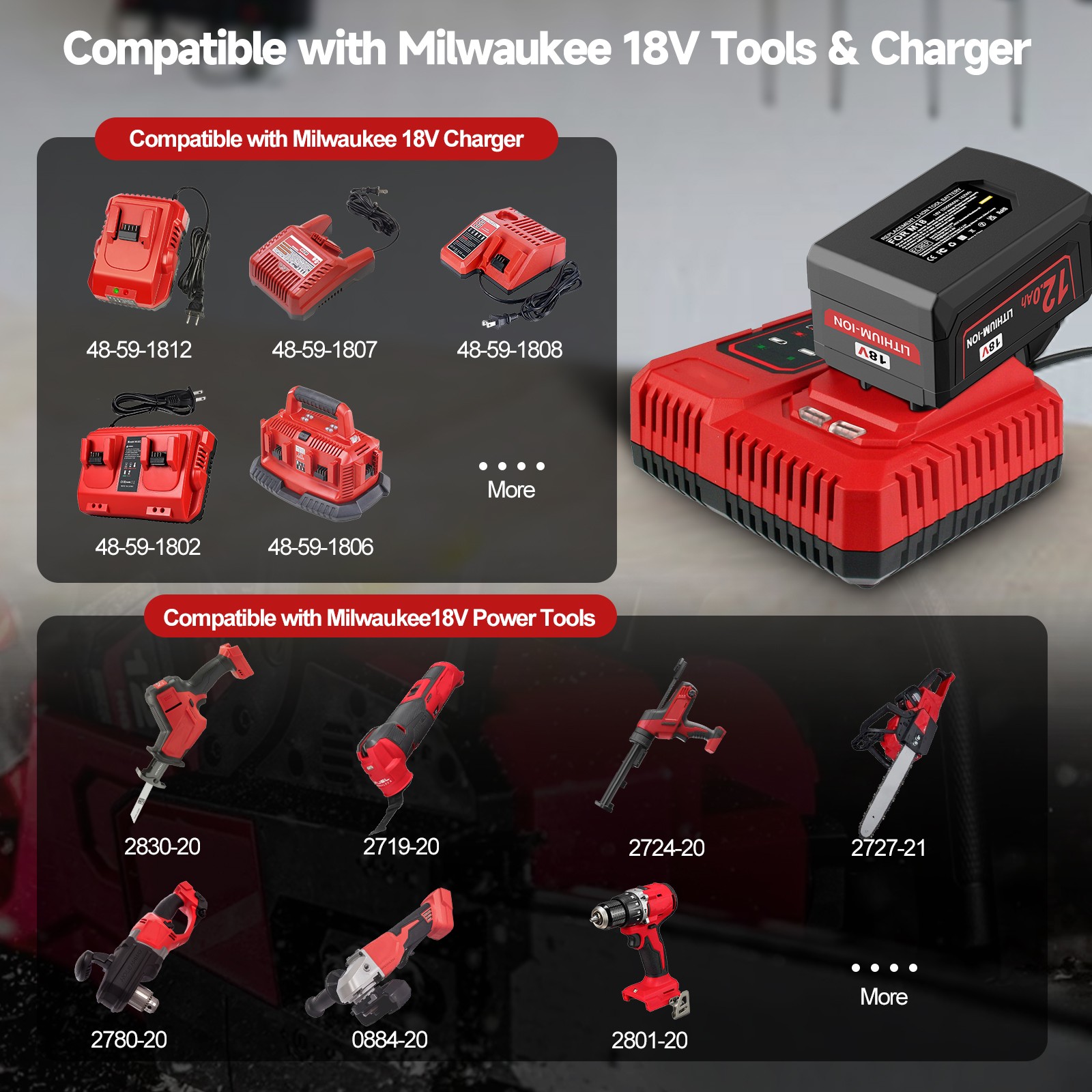 Compatible Models 2: For 48-11-1850,48-11-1828,48-11-1820, 48-11-1815