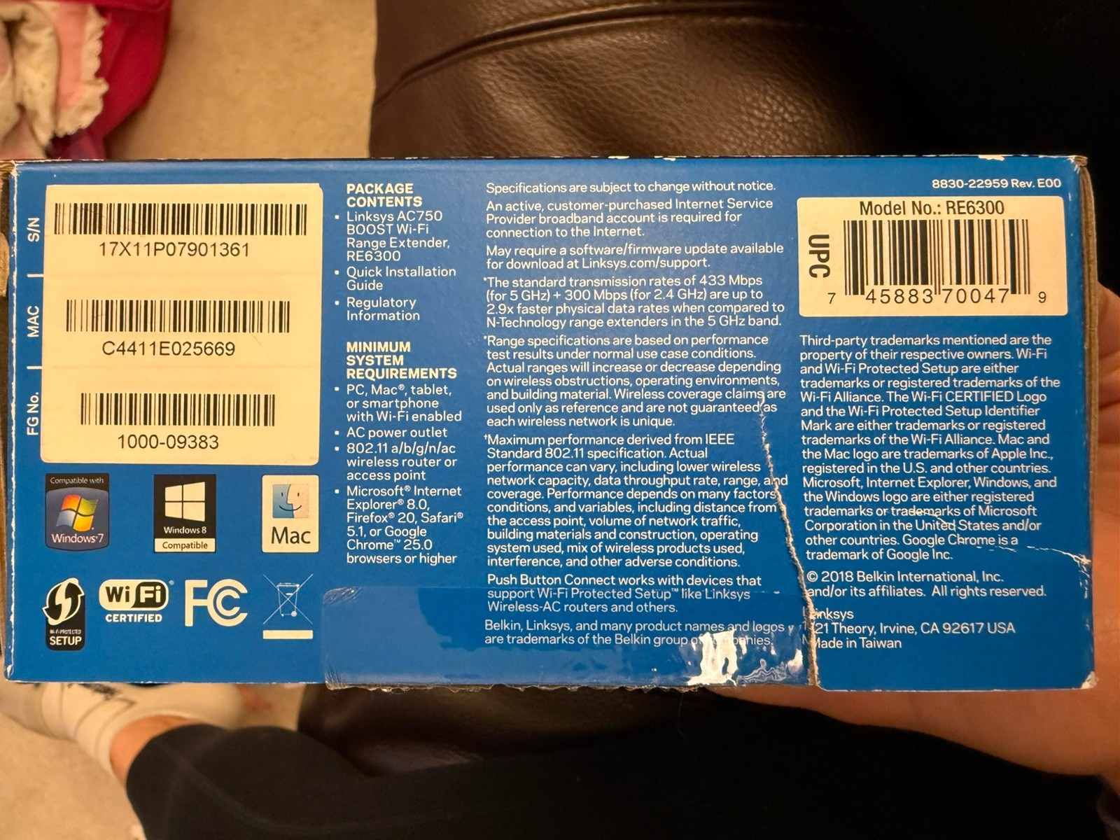 Linksys AC750 Boost RE6300 WiFi Booster Range Extender EUC