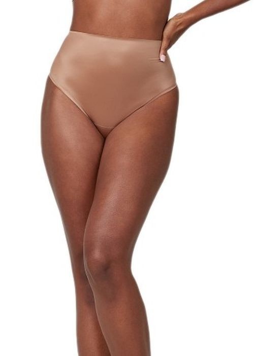 как выглядит NWT SPANX 40063R "Shaping Satin" High Waist Control Panty, Thong, Beige фото