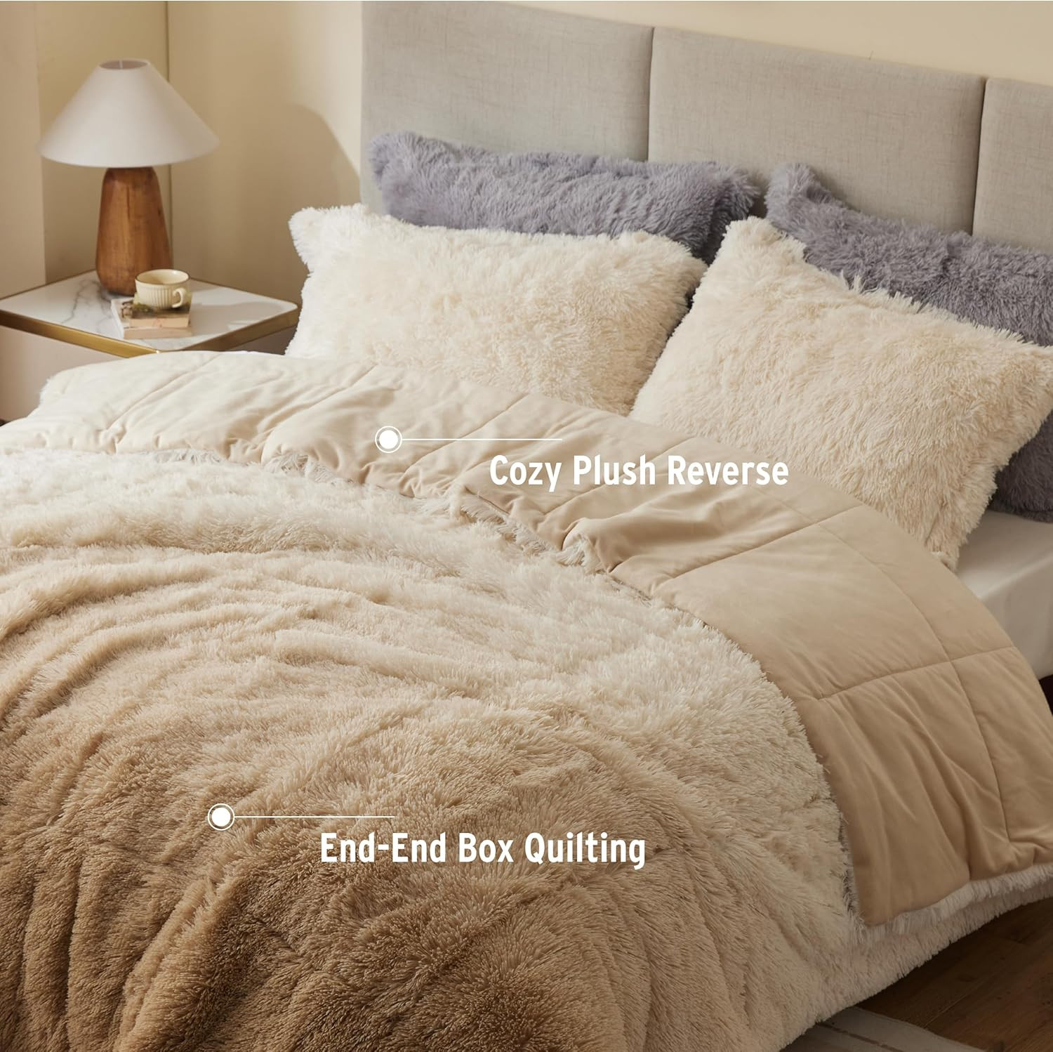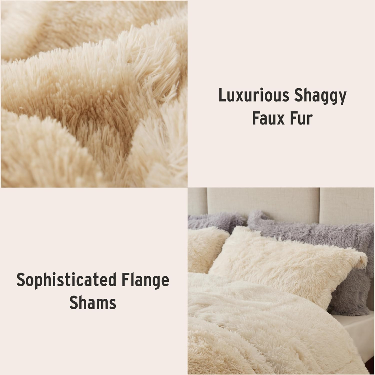 Shaggy Faux Fur Comforter Set Queen - Ombre Gradient, Soft Plush Bedding Set
