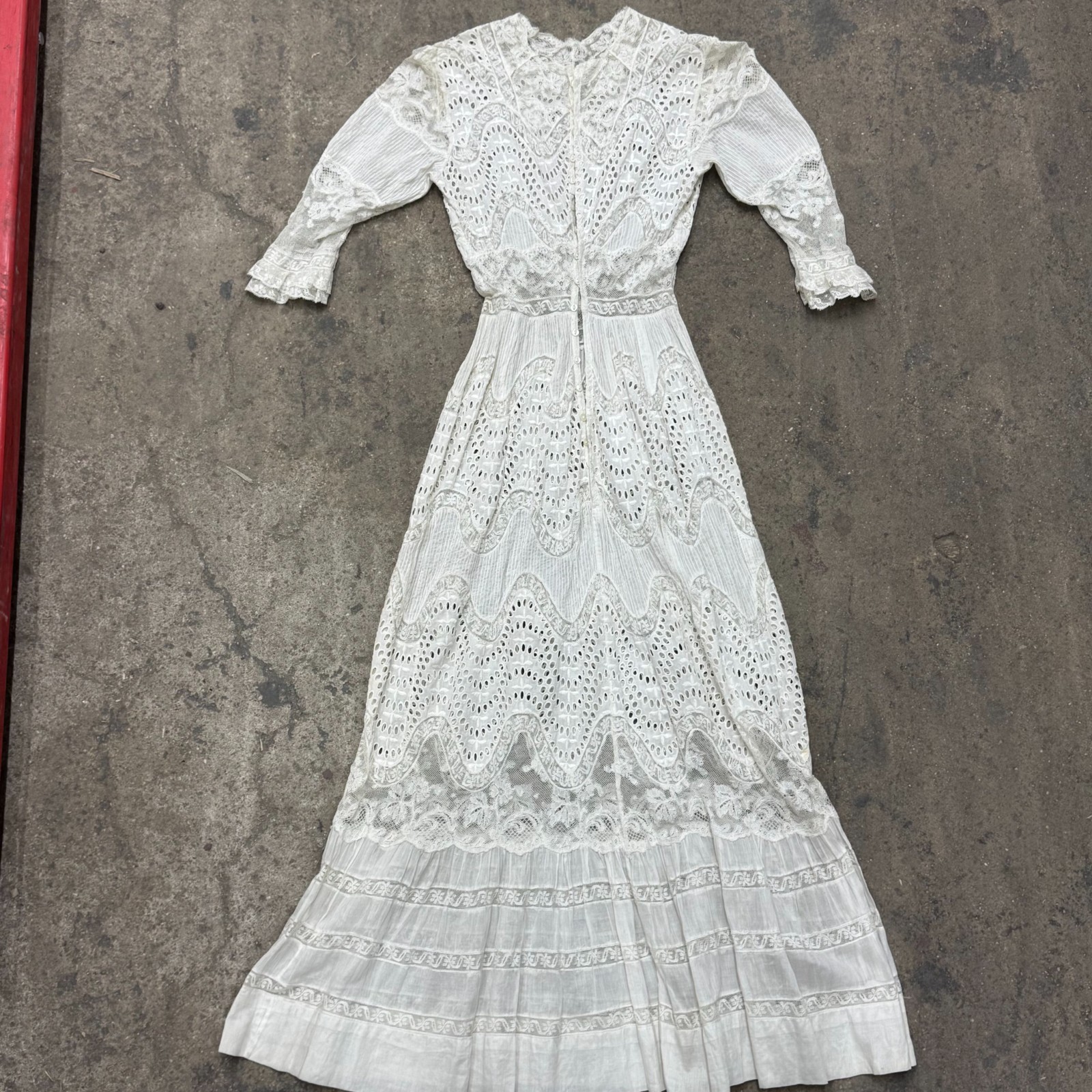 Antique Edwardian Lace Dress Broderie Anglaise Irish Crochet Bridal Wedding