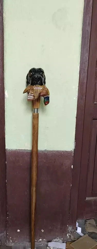 Wooden walking stick hand carved Dog handmade wooden walking cane