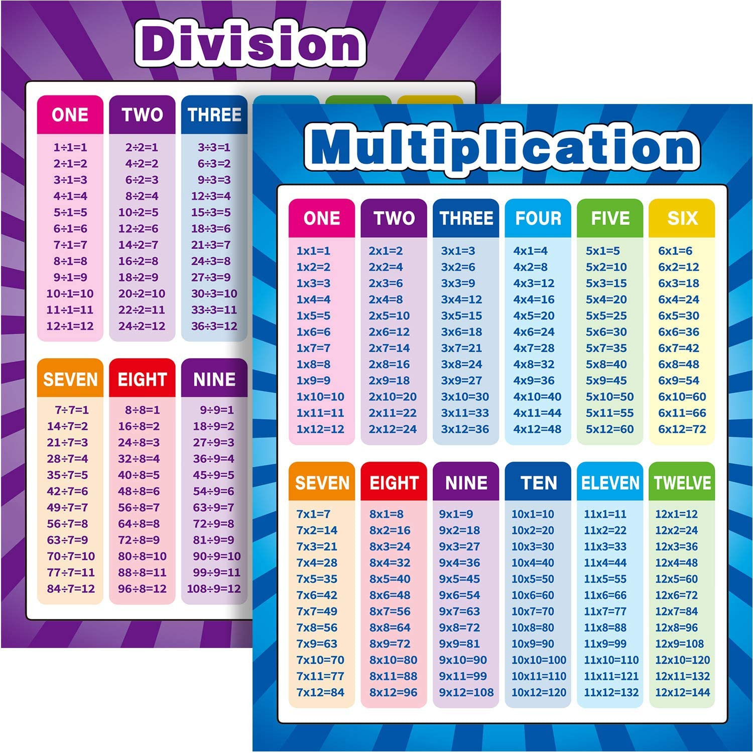 2 Pack Extra Large Educational Math Posters, Multiplication Posters Times Tables