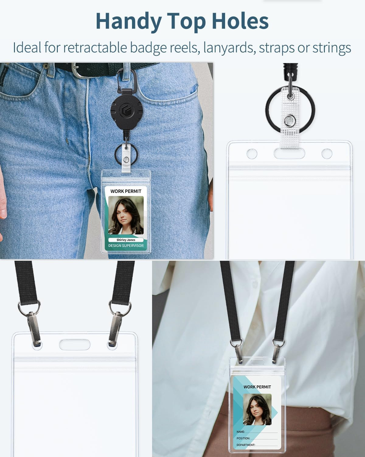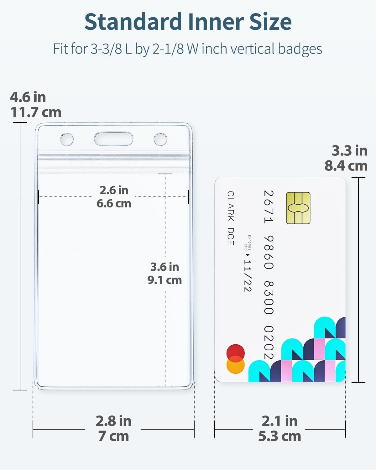 6 Pack Vertical ID Card Badge Holder Waterproof Clear Card Sleeve Case Cover Hea