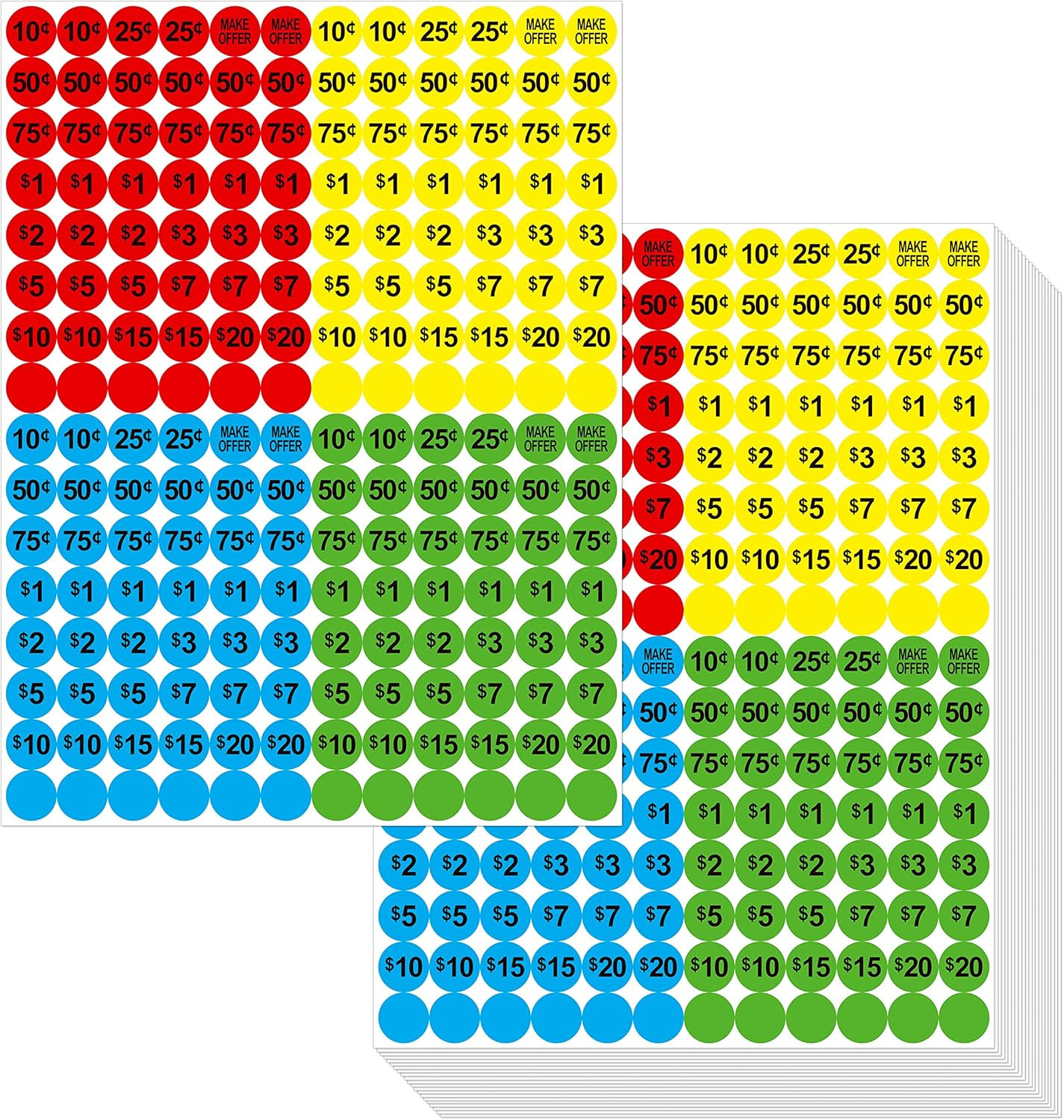 3840 Pcs Garage Sale Flea Market Prepriced Pricing Stickers in Bright Colors Ye