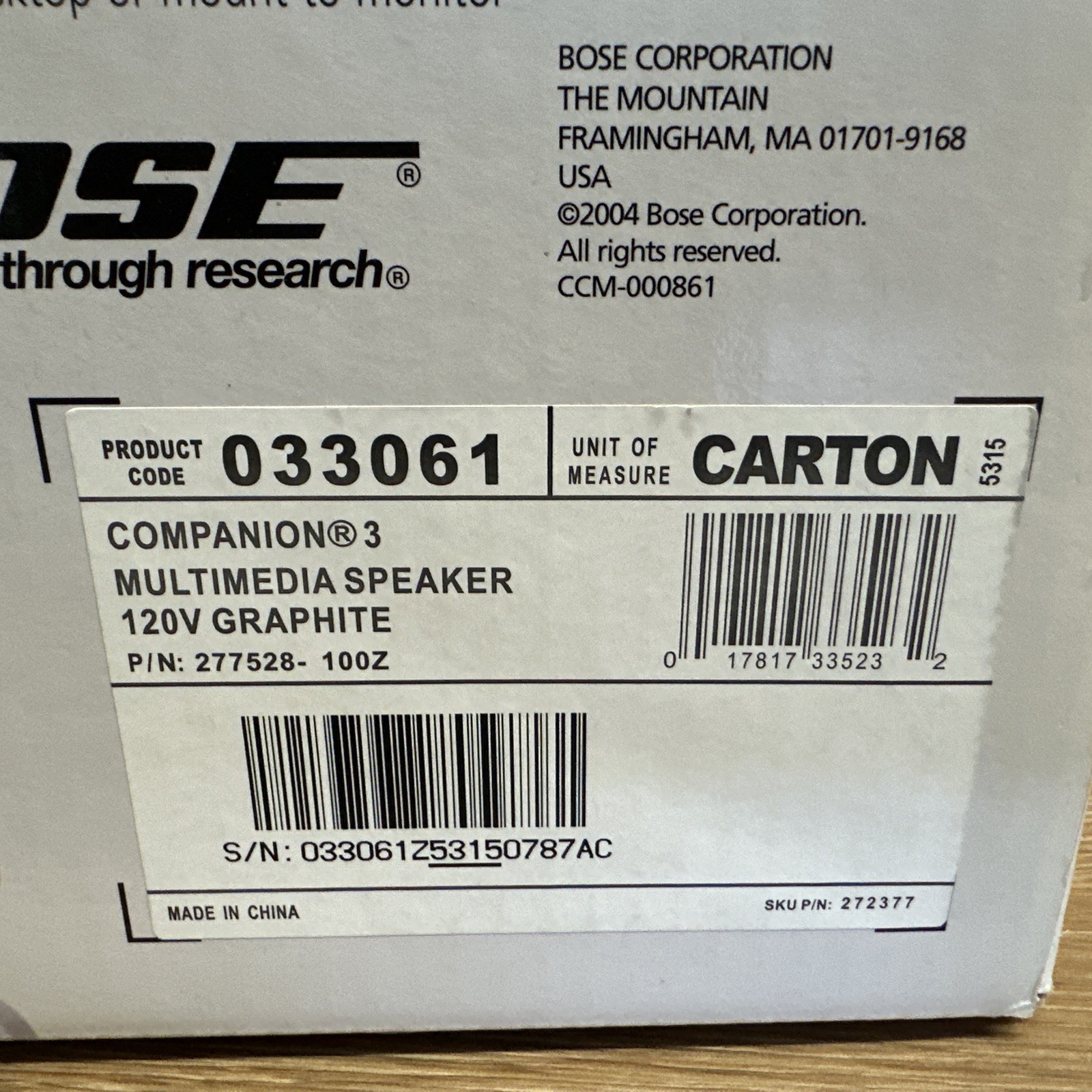 BOSE Companion 3 Series Multimedia Speaker System Original Box