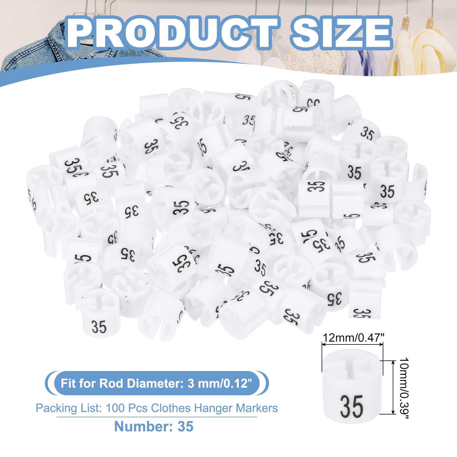 100 Pcs Clothes Hanger Markers, Number 35 Tag for Clothing Hangers, White