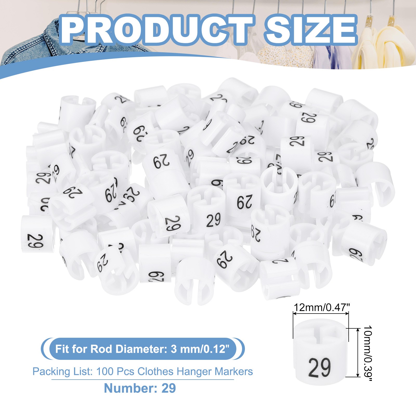 100 Pcs Clothes Hanger Markers, Number 29 Tag for Clothing Hangers, White