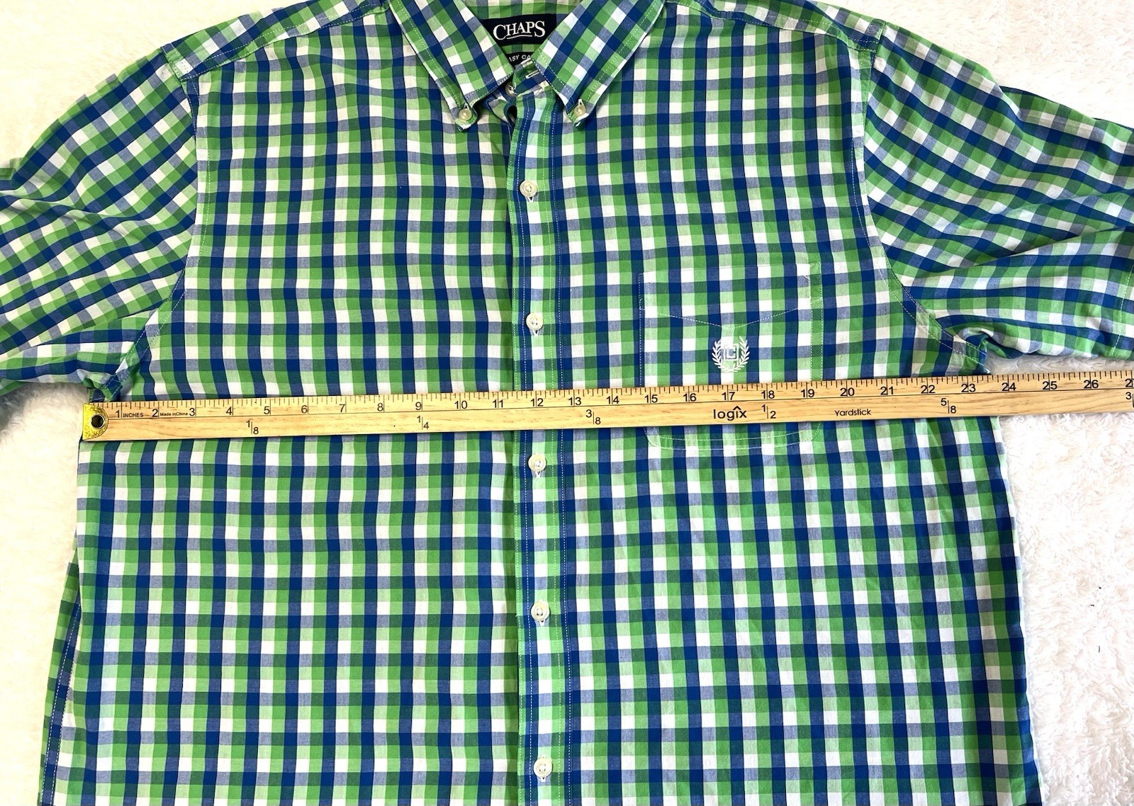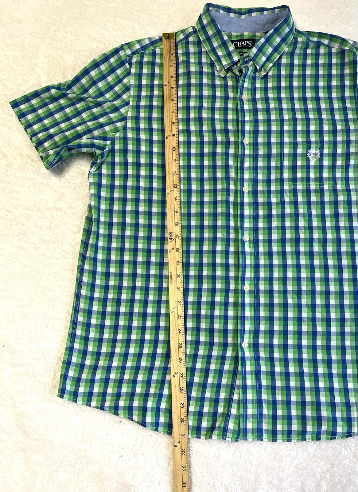 как выглядит Chaps Men s Shirt Button-down Easy Care Plaid Short Sleeve Cotton Blend XL фото