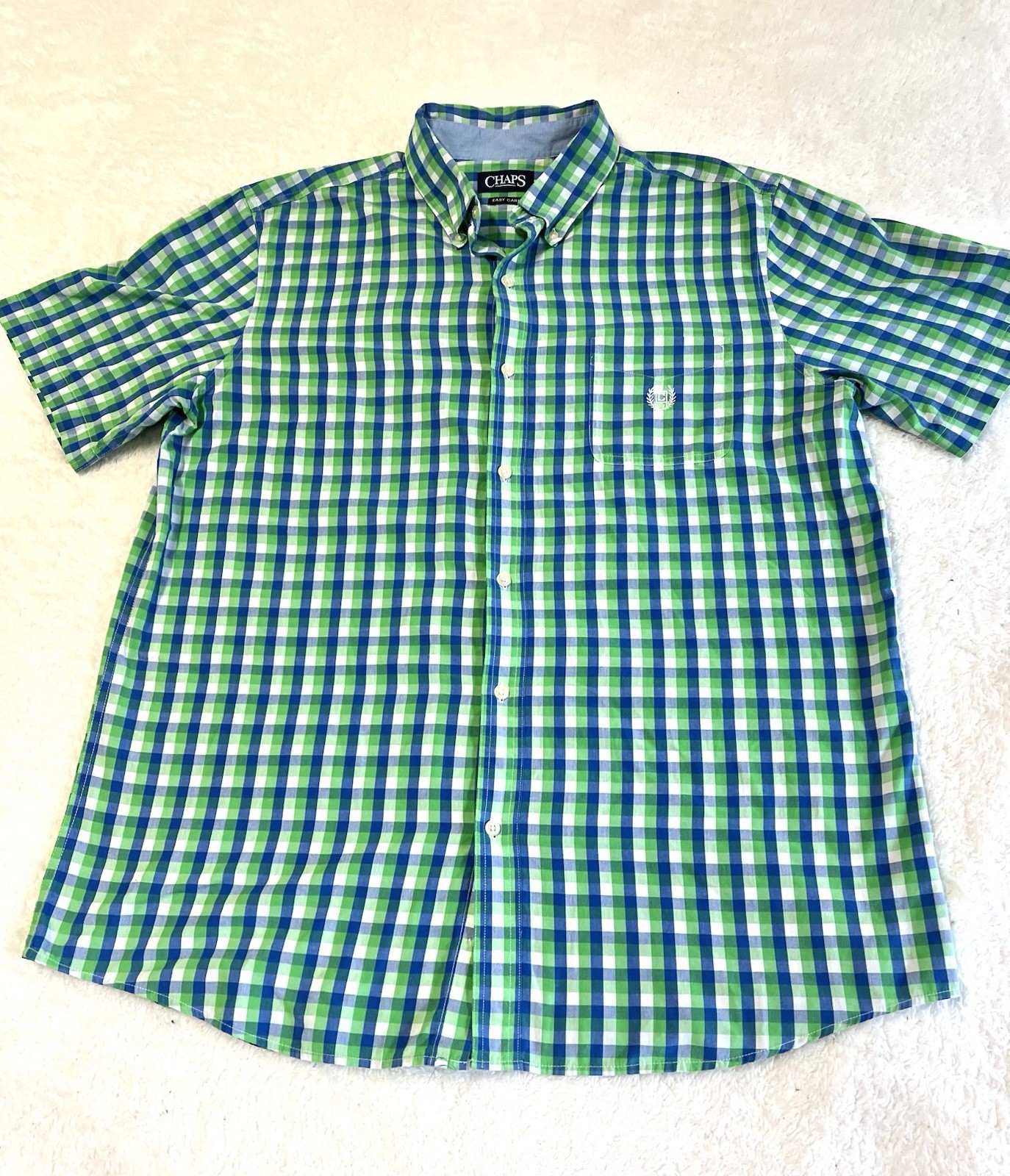 Chaps Men s Shirt Button-down Easy Care Plaid Short Sleeve Cotton Blend XL