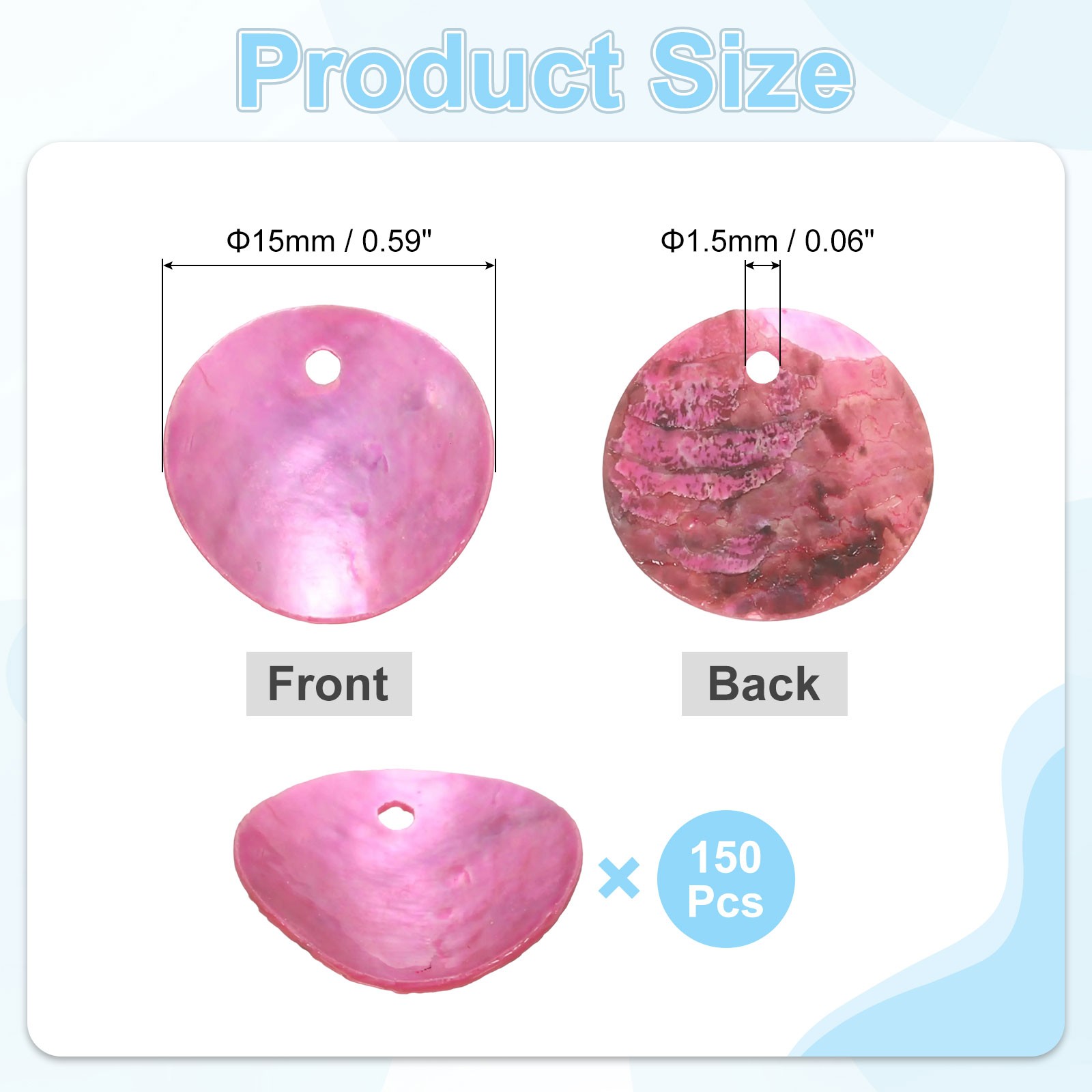 150Pcs 15mm Flat Round Shell Coin Beads, Shell Charm Beads with Hole, Rose Red