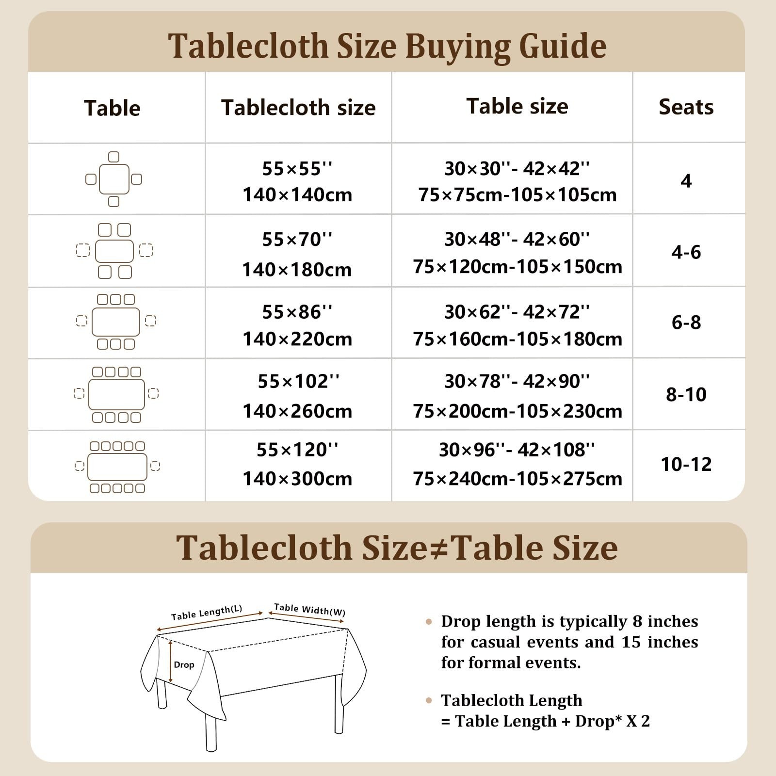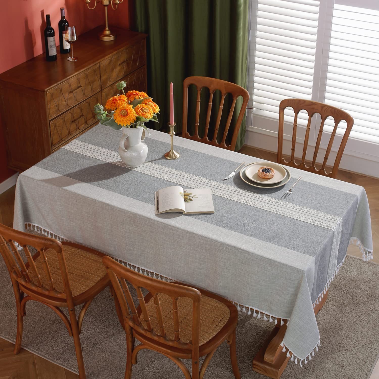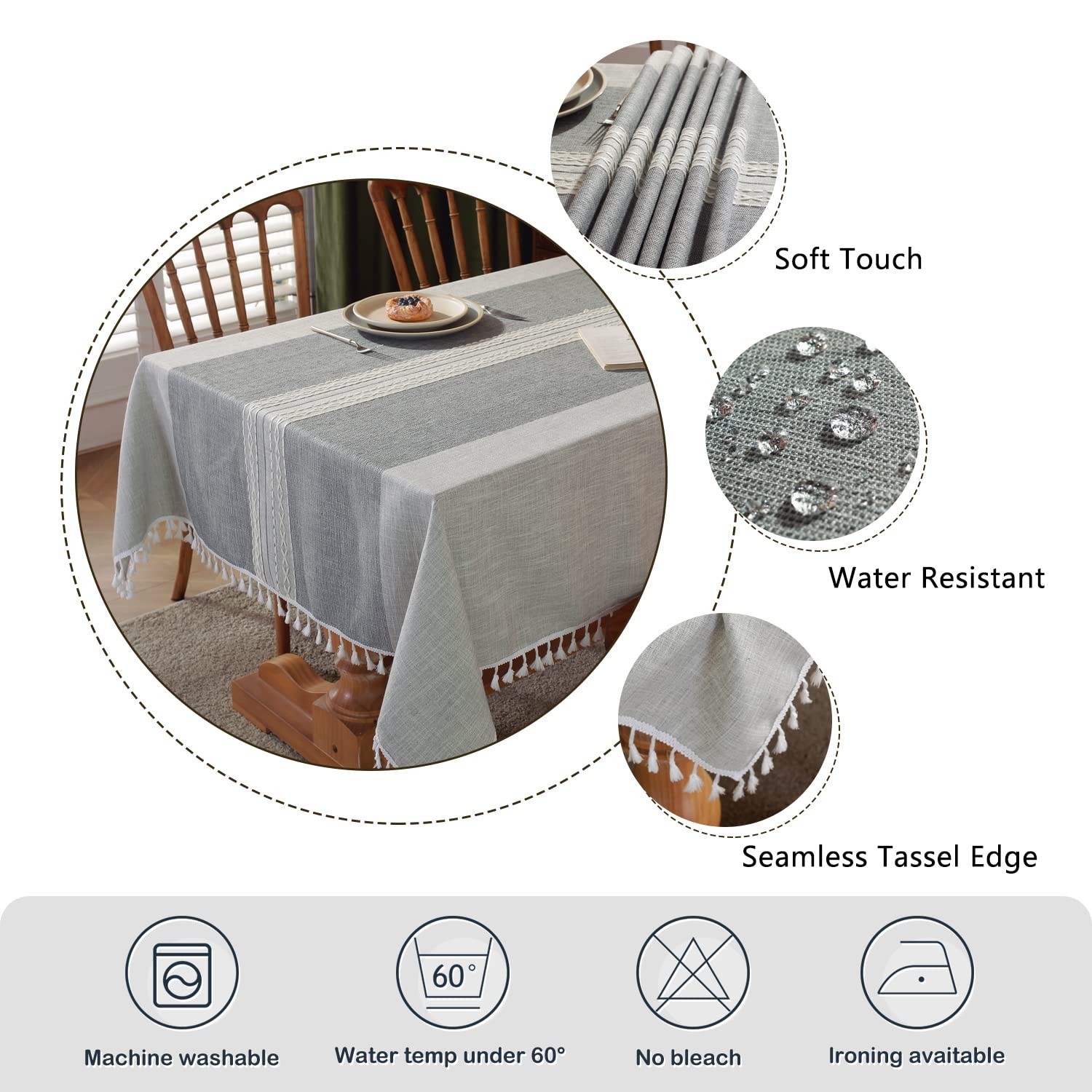 Laolitou Waterproof Tablecloths with Fringe Tassels,Grey Table Cloth 55x55,...