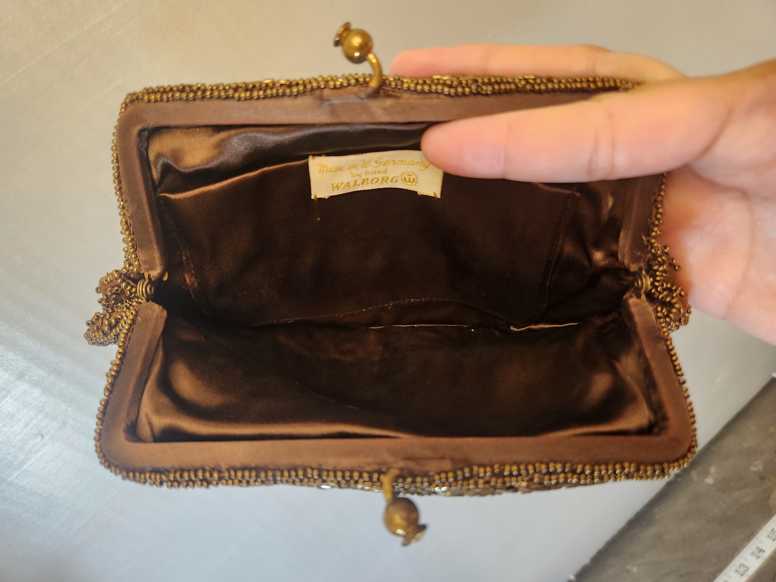 как выглядит Bronze Walborg Evening Purse Womens Beaded Clutch Handbag Germany 60s фото