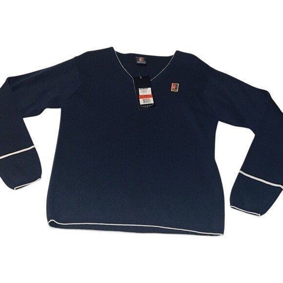 как выглядит VTG-90 s-RARE-Nike-L-V-neck, embroidered, long sleeve, ribbed, pullover, sweater фото