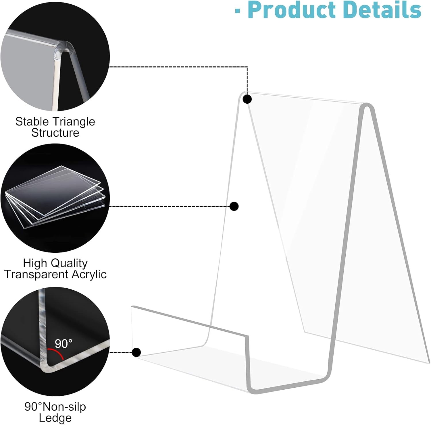 4Pcs Acrylic Book Stand Clear Easel Stand for Display Book Display Holder USA