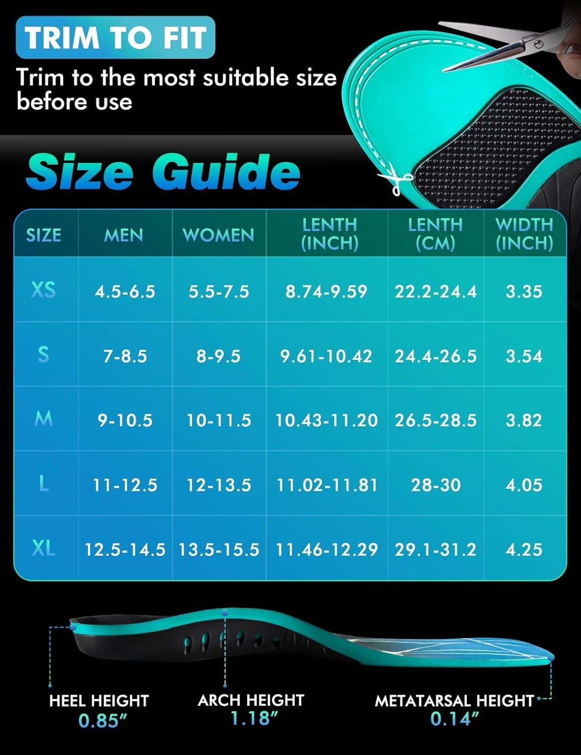 как выглядит "Fasciitis High Arch Support Insoles for Men Women, Work Boot Shoe Inserts for W фото