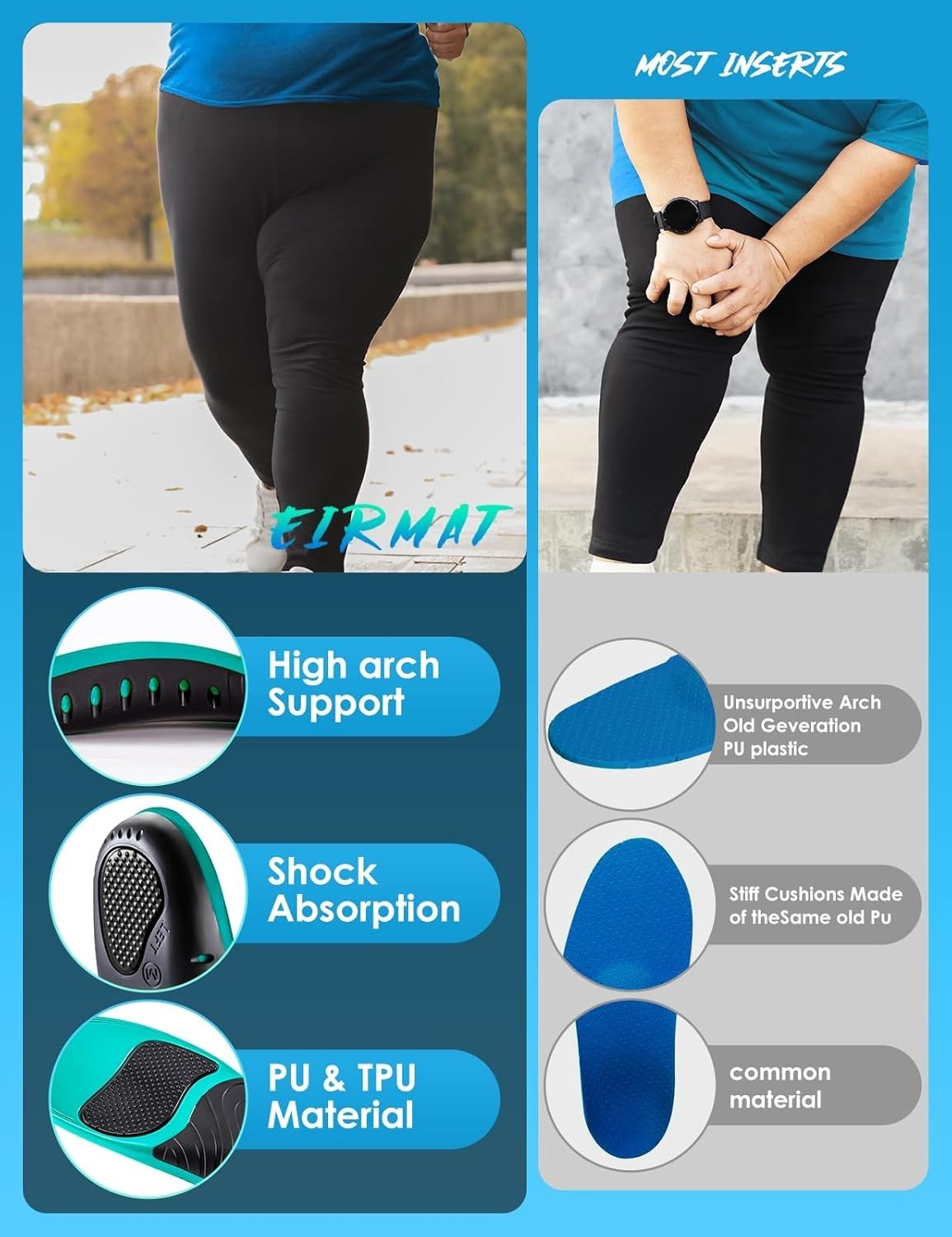 Fasciitis High Arch Support Insoles for Men Women, Work Boot Shoe Inserts for W