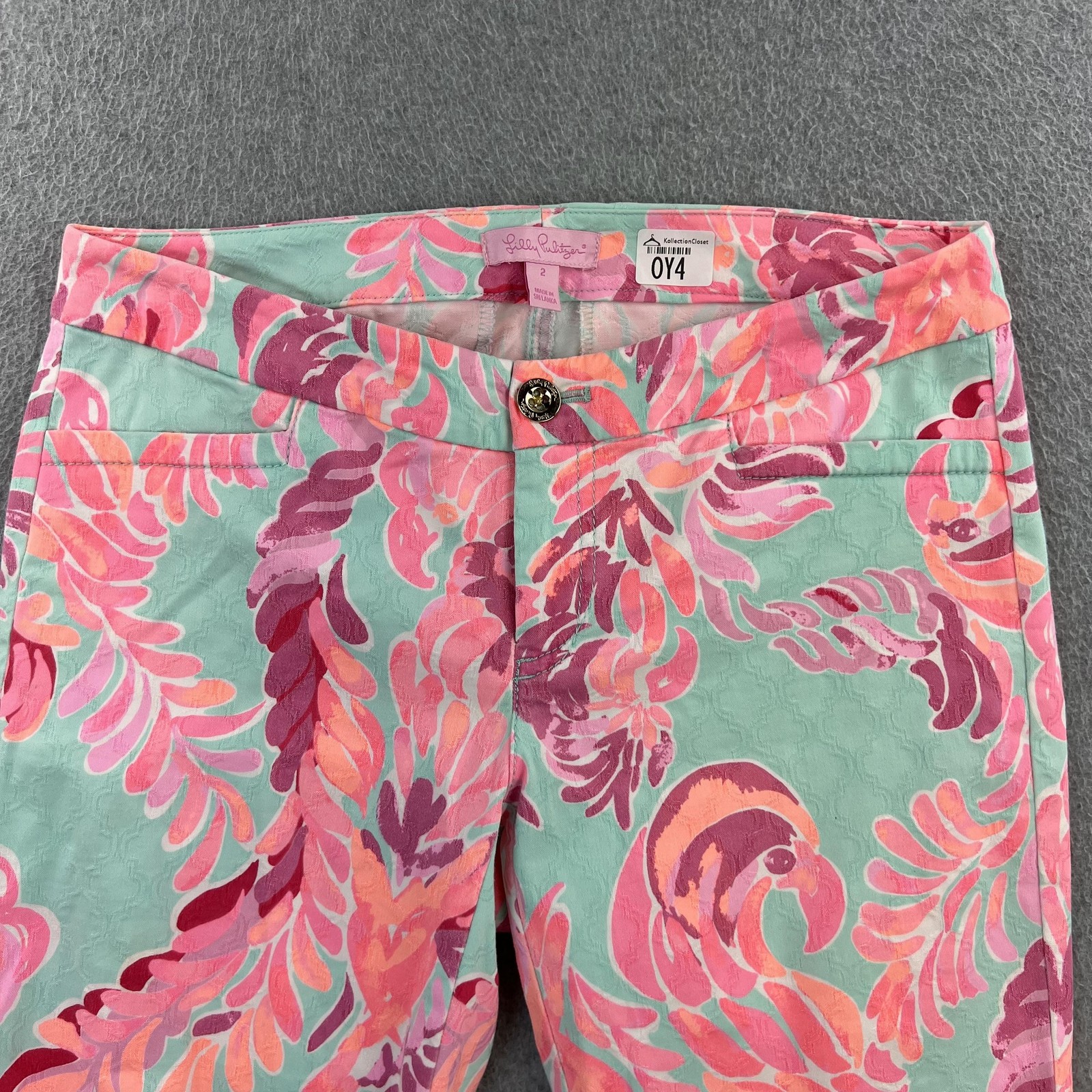 Lilly Pulitzer Pants Womens 2 Pink Flamingo Tropical Print Slim Ankle Ladies