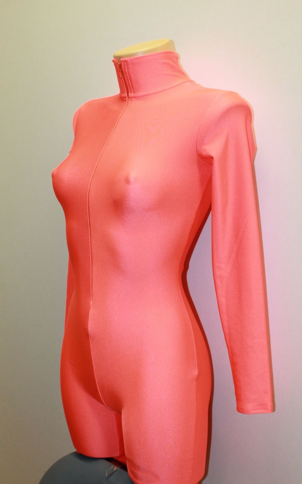 Women Shortened Catsuit 267-30 Long Sleeve Zipper Front Coral Spandex Size M