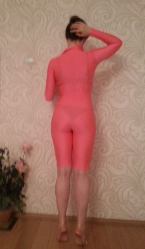как выглядит Women Shortened Catsuit 267-30 Long Sleeve Zipper Front Coral Spandex Size M фото