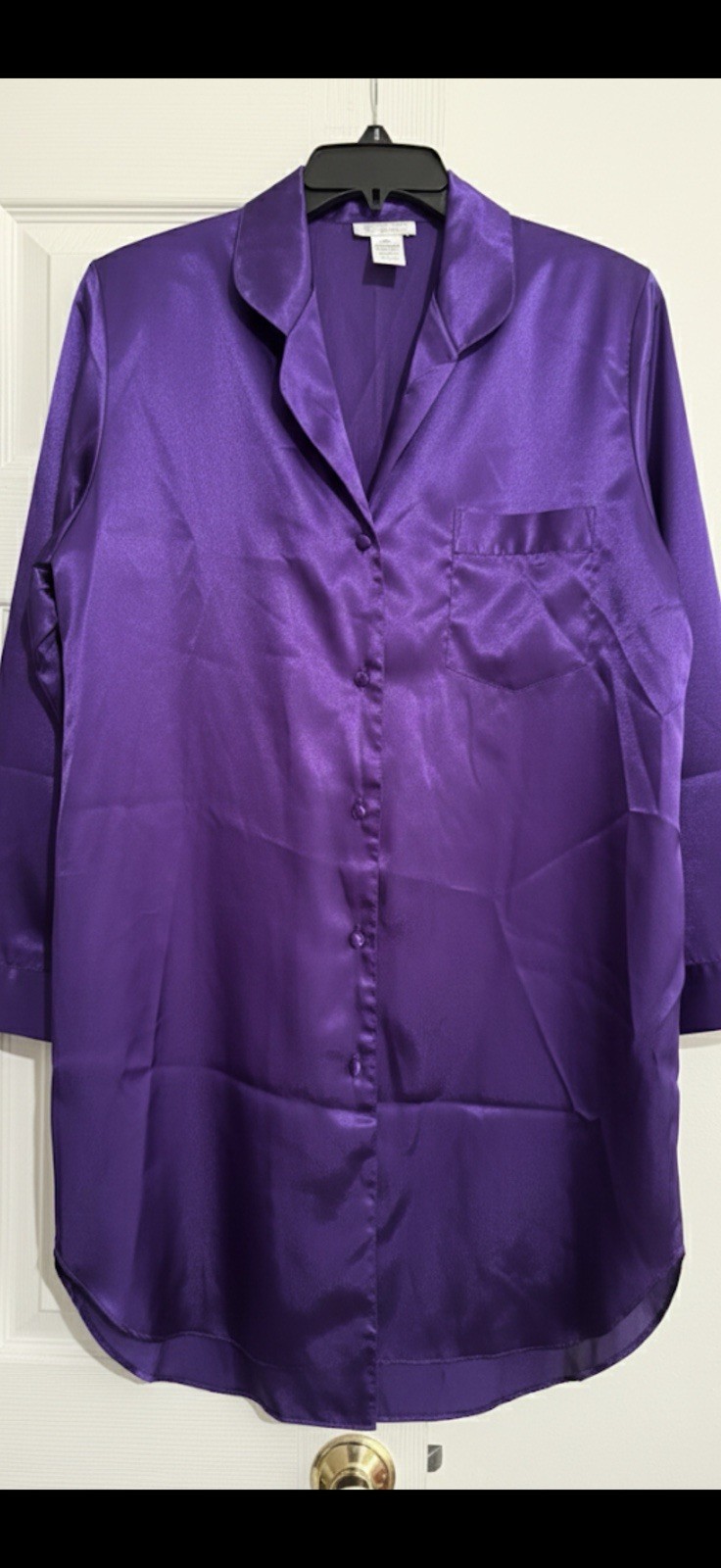 как выглядит VTG Y2K Mystique Intimates Babydoll Purple Satin Lounge Shirt Dress Women M фото