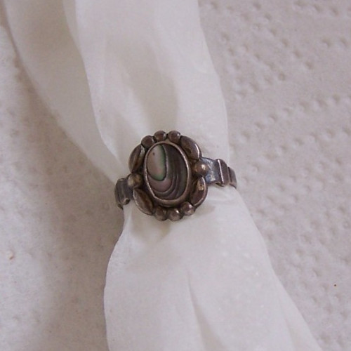 Small Sterling Silver Ring - Abalone Shell Type Center- Size 4